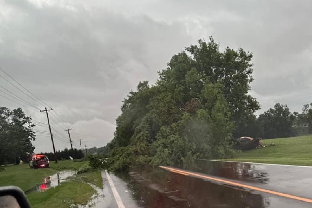 As storms moved through Christian County Sunday morning, strong winds and rain caused damage throughout Pembroke, Kentucky.
