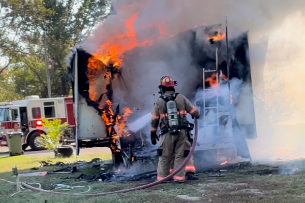 Hopkinsville Fire Department responded to a supposed vehicle fire on Monday and found a lived-in camper up in flames.
