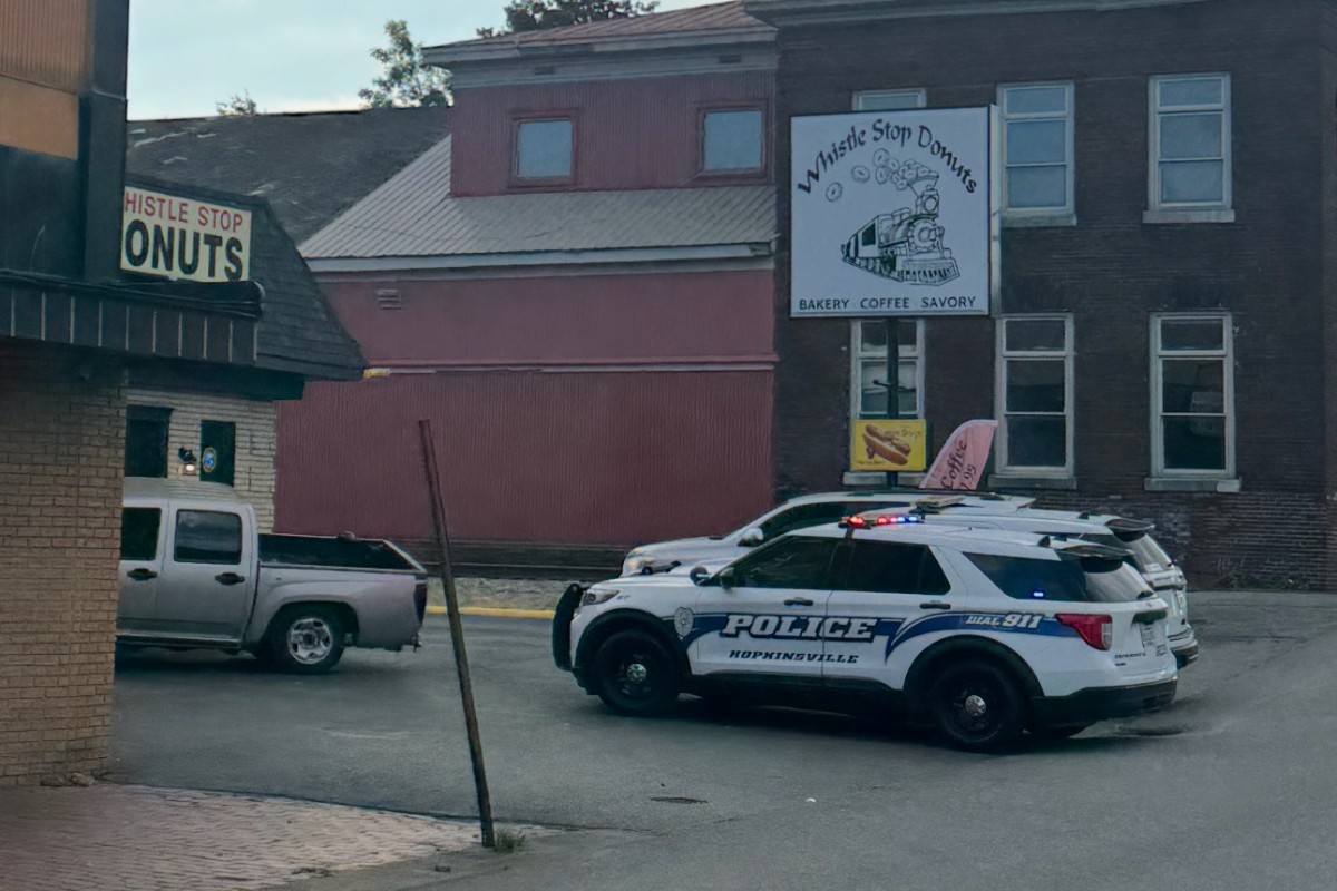 A vehicle struck a donut shop in downtown Hopkinsville on Tuesday morning after losing control while driving.