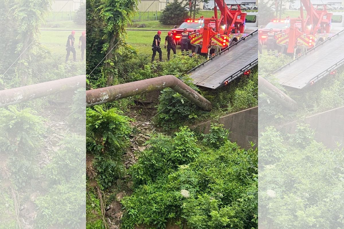 A man died after his vehicle crashed on North Drive and fell down an embankment early Sunday morning.