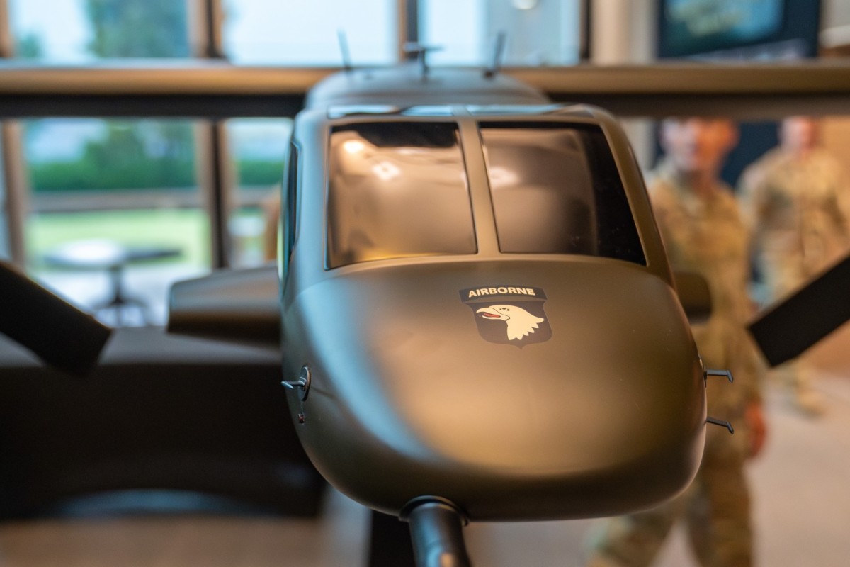 The 101st Airborne Division (Air Assault) held a ceremony which unveiled a MV-75, 1/8th scale Future Long Range Assault Aircraft (FLRAA) model.
