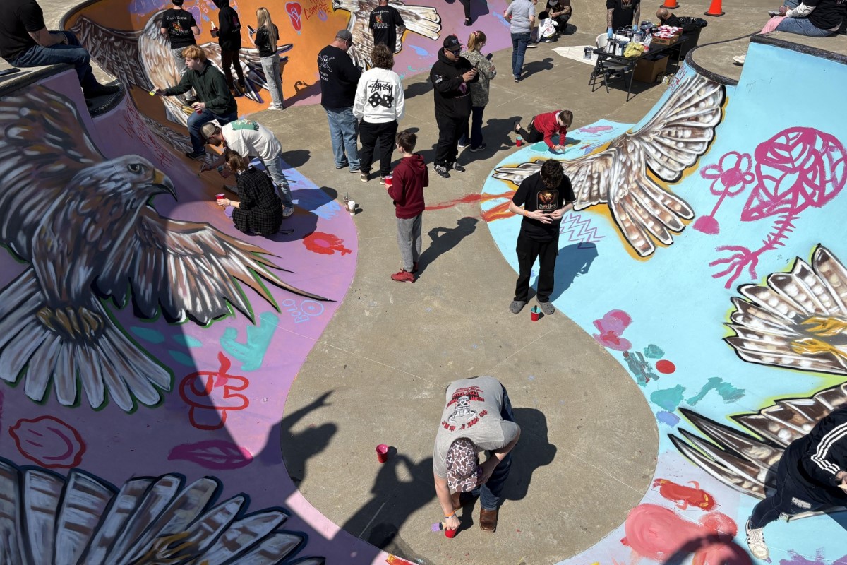 A large crowd of eager community members came out to the Hopkinsville Skate Park on Saturday to make their mark by painting a mural during the Paint and Skate event.