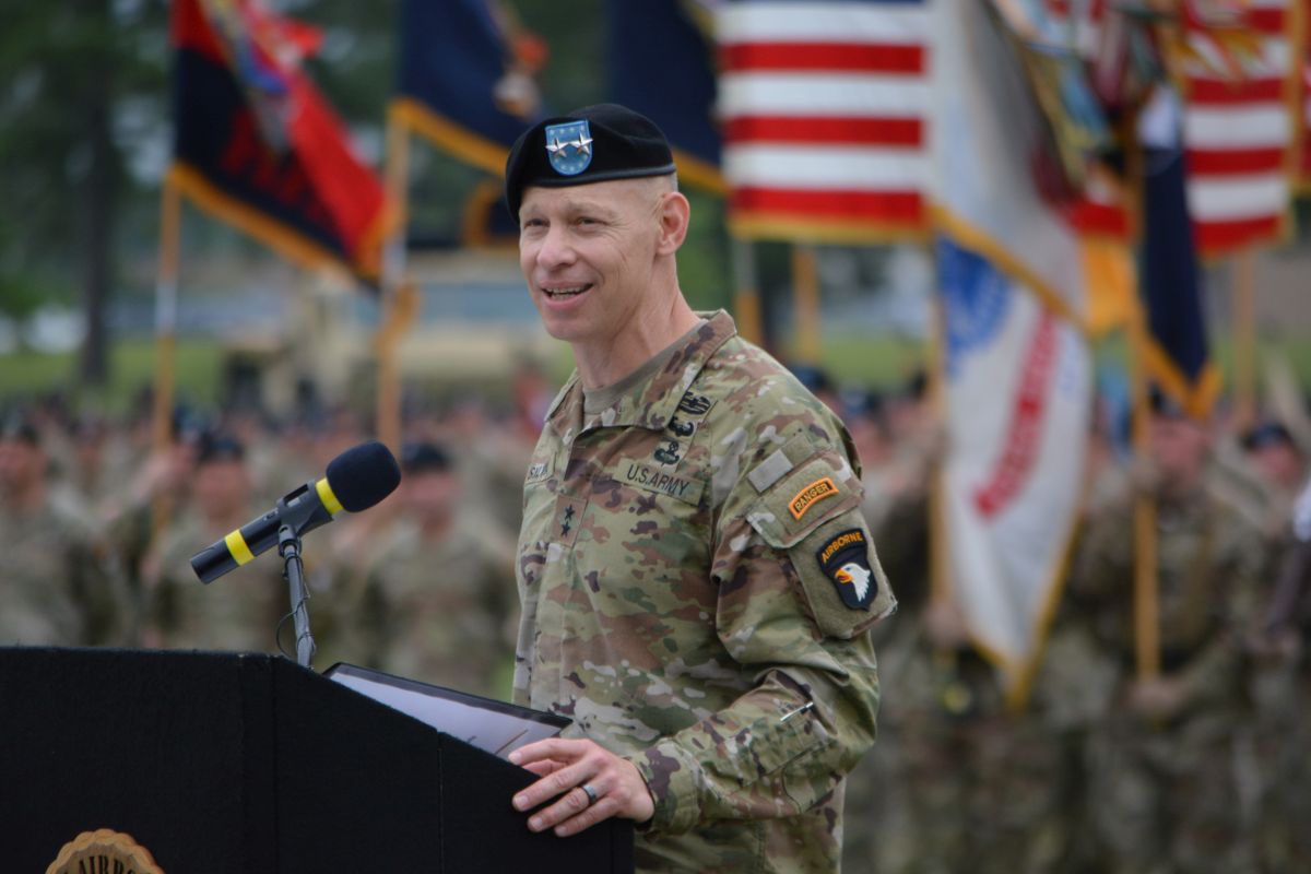 “It is a tremendous honor to have served here, it is a tremendous honor to have served as commanding general. I can’t tell you how sad I am to depart knowing this is my last formation with the Screaming Eagles, but also how incredibly proud I am to have been associated with a great group of Americans. Screaming Eagles, Air Assault,” McGee said.