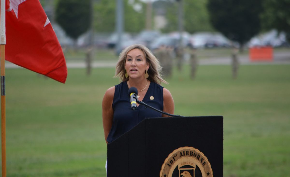Tracy Koon performs the National Anthem at the 101st Airborne Division (Air Assault) and Fort Campbell Change of Command Ceremony on Jul. 20, 2023. (Lee Erwin)