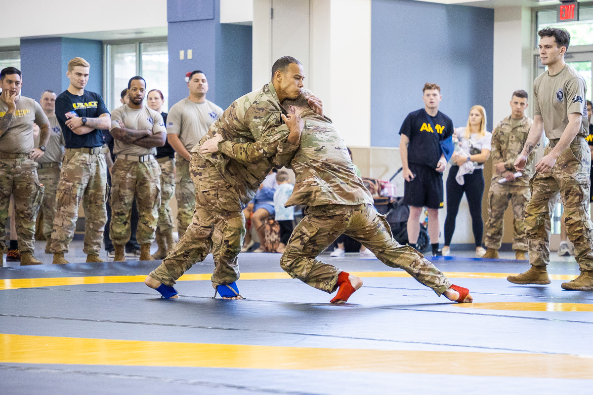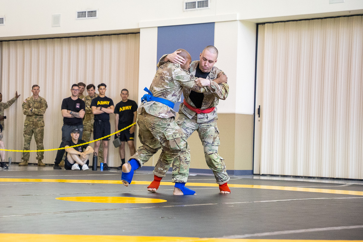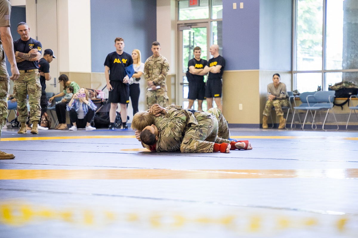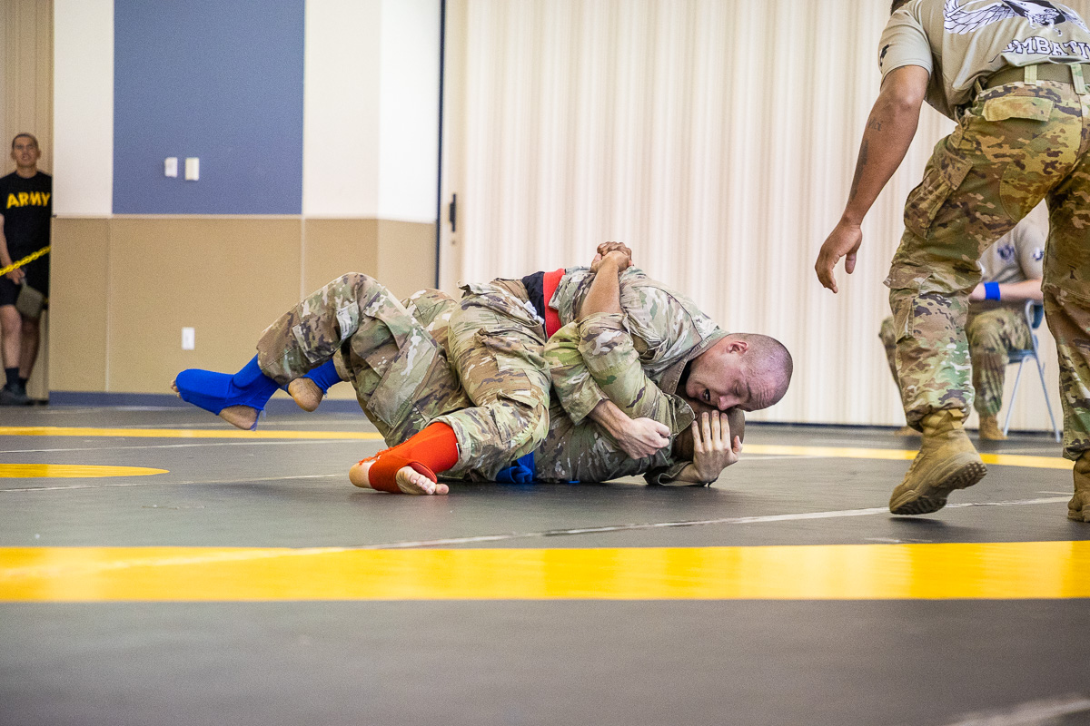 Many of the competitors and coaches brought years of experience to the mat, including Sgt. Wellington Godoi, head coach of the Fort Campbell Combatives Team, and fighter Jefferson Da Silva. “I was born in Brazil, so there it’s either soccer or jiu-jitsu. I chose the martial arts route,” Godoi said. Today, he runs a program on post where soldiers and dependents of all ages can train in both striking and grappling.