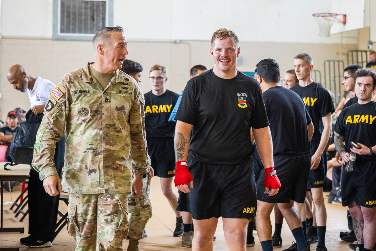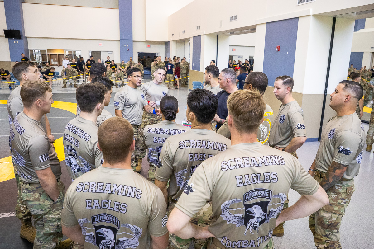 The week also included a competitive boxing tournament with more than 40 fighters from across Fort Campbell. Matches were divided by weight class and spread over a few days, with 17 fights on the first day, 10 on the second, and championship rounds planned for the final day. Fighters competed for individual titles as well as points toward their brigade’s overall score. These scores, along with points earned from other events like combatives, stress shoot, and other various competitions, will be added together to determine the overall winner of the Commander’s Cup. The cup is awarded to the brigade with the highest combined score at the end of Week of the Eagles events.