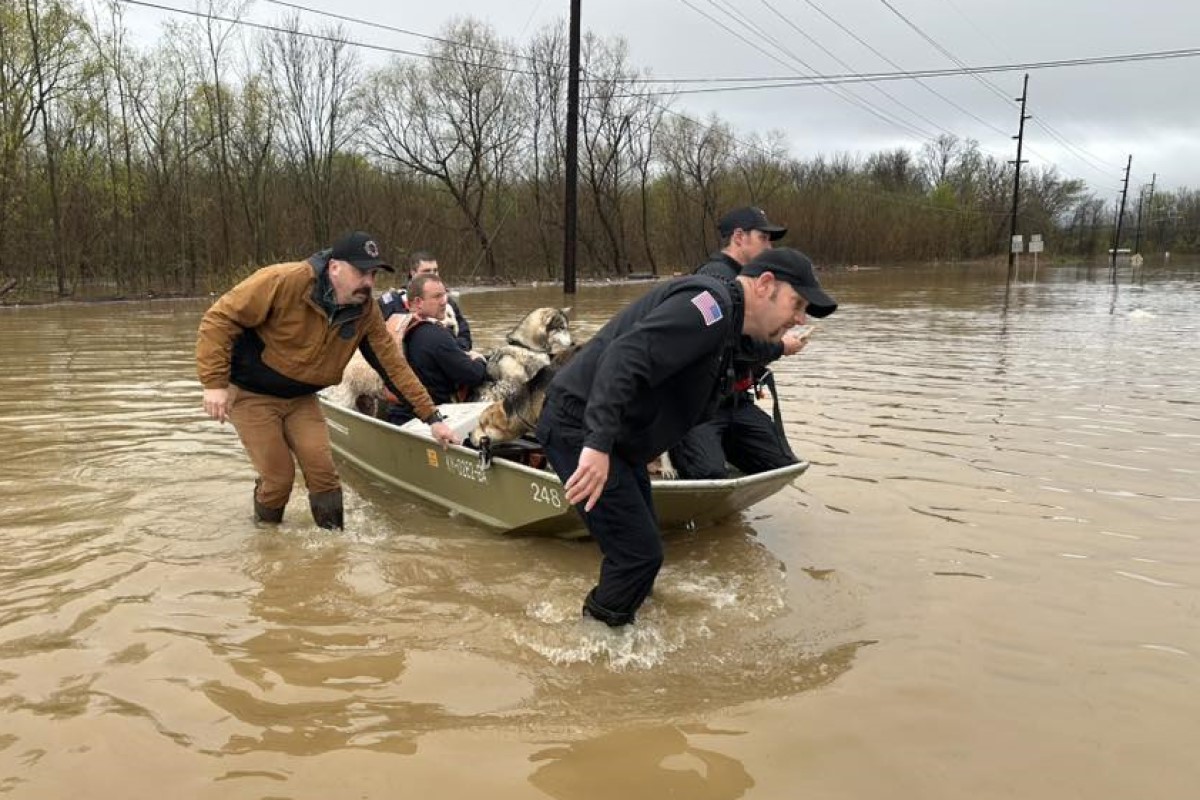 Yesterday, Hopkinsville Fire Chief Steve Futrell shared that they had already responded to over 20 emergency calls and assisted on 12 home rescues, including the rescue of nearly 50 pets from the Pet Lodge. Oak Grove Fire Department reported later in the day 22 people had been rescued in the area, along with nearly a dozen additional pets with help from the Christian County Rescue Team and the Fort Campbell Fire Department.