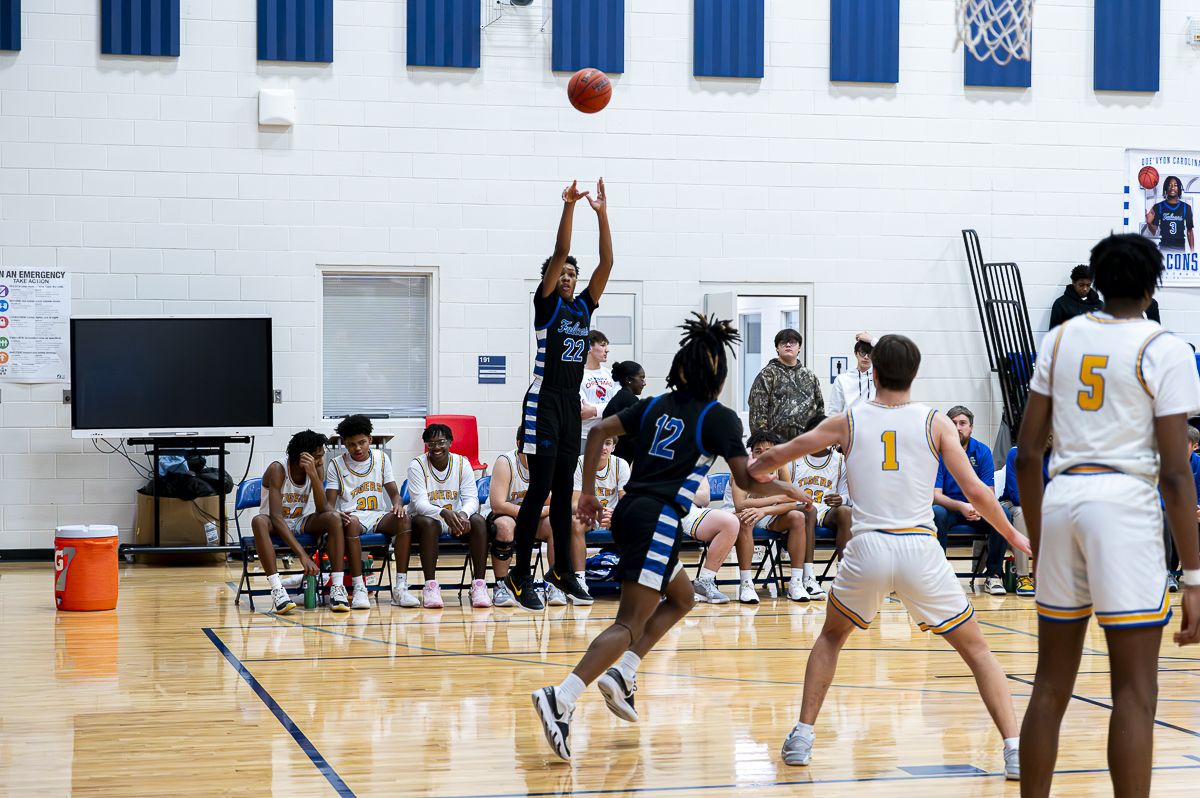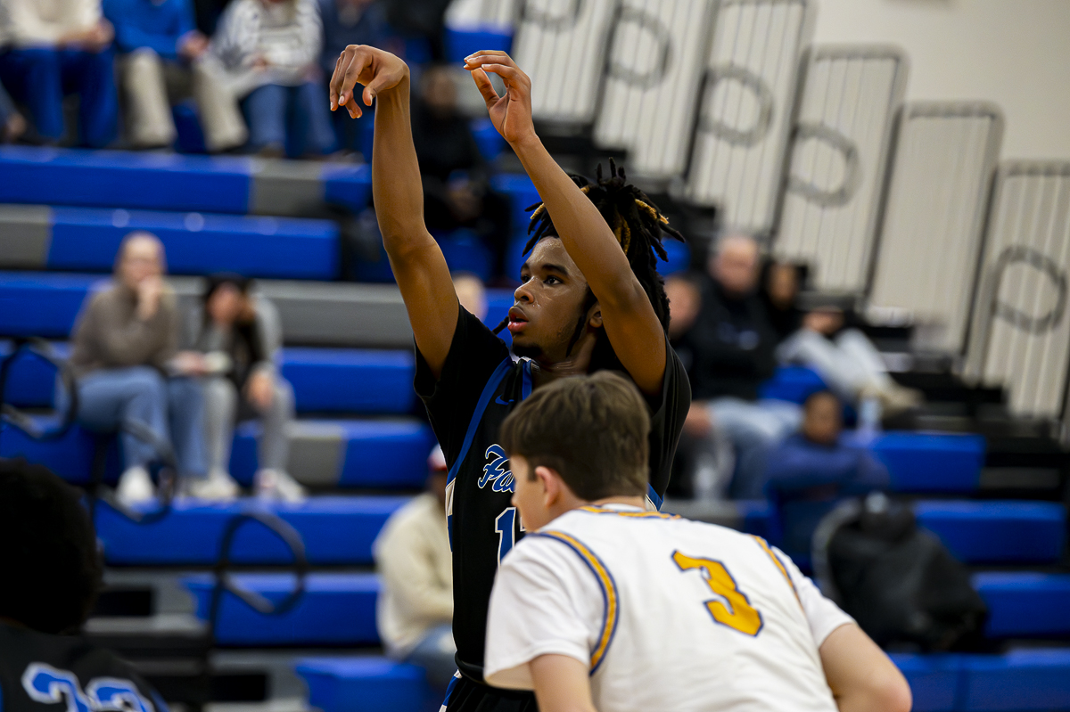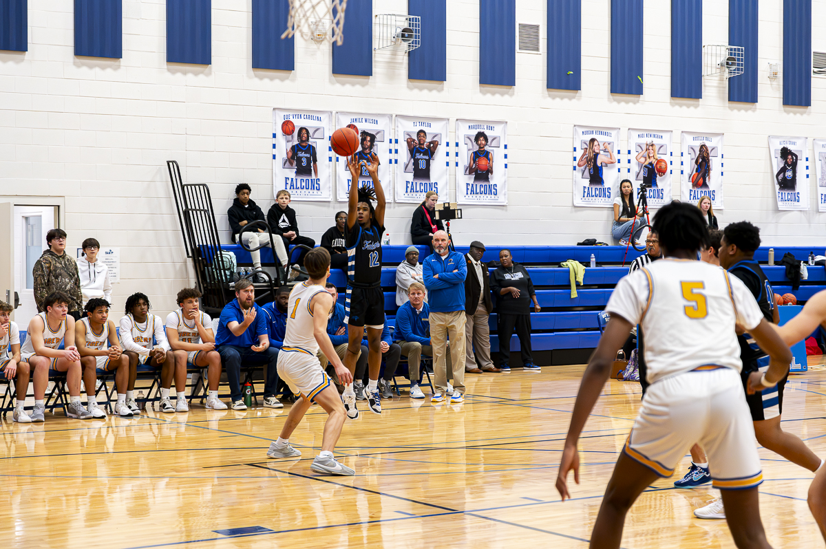 #22 Israel Dillard of the FCHS Falcons for three against the Caldwell County Tigers on January 8, 2025 (Jeff Danault)
