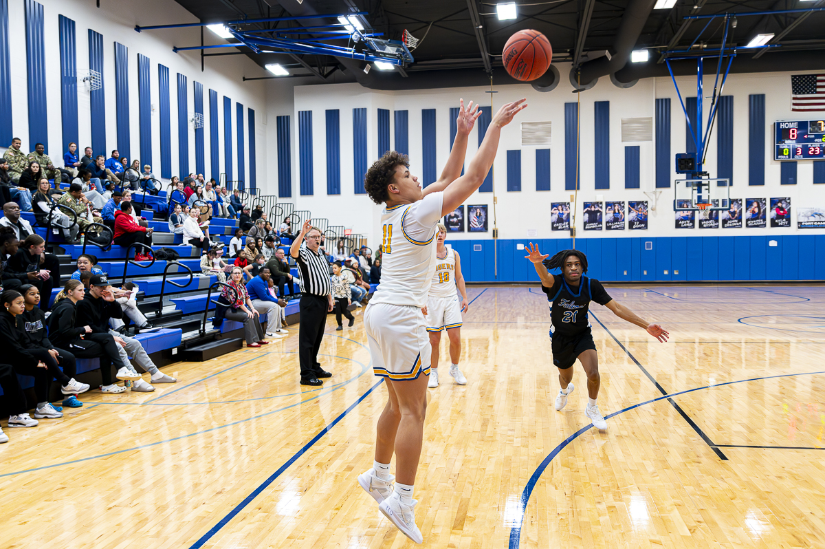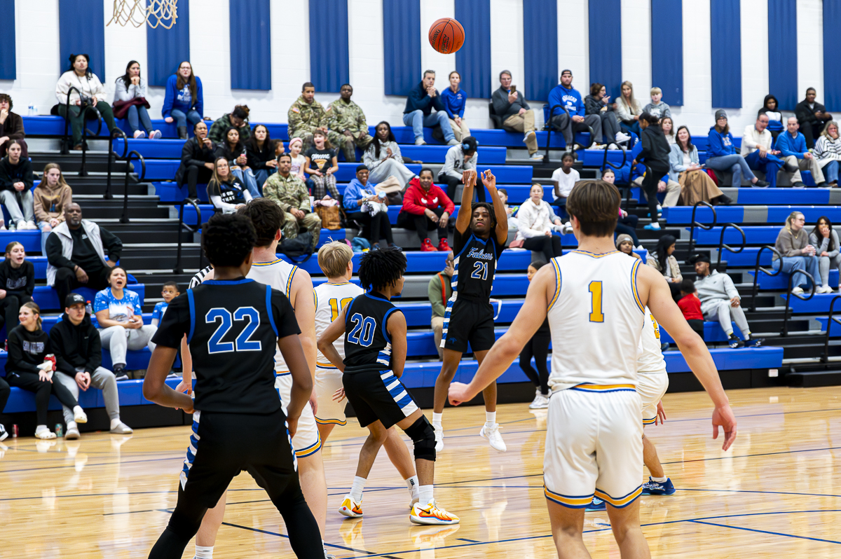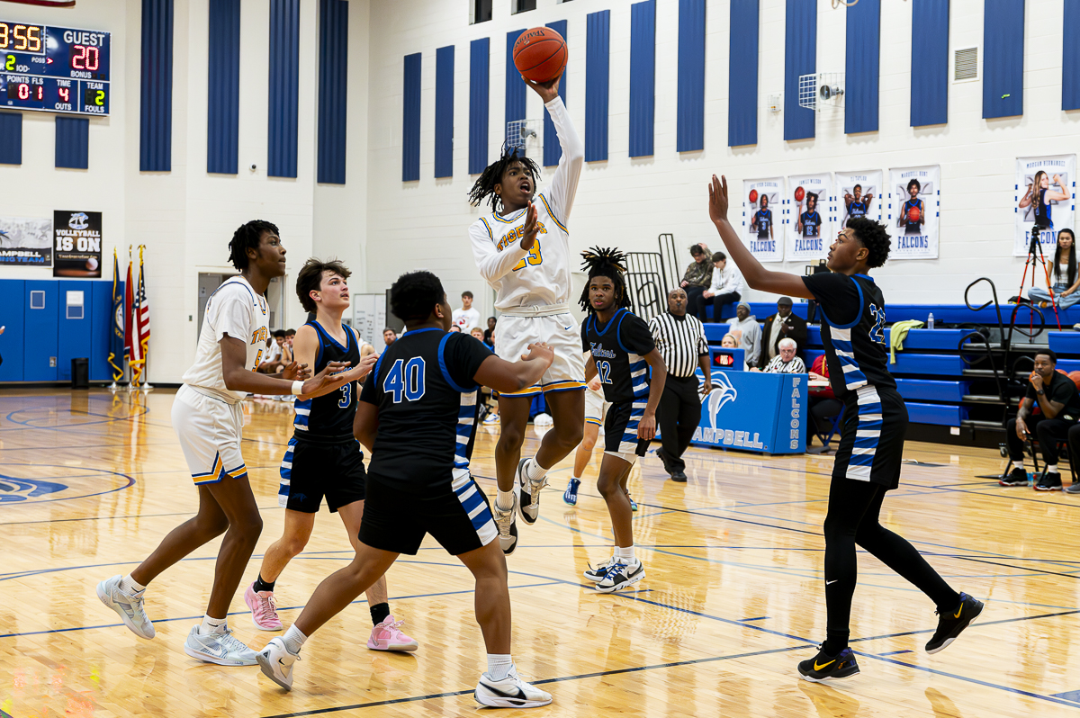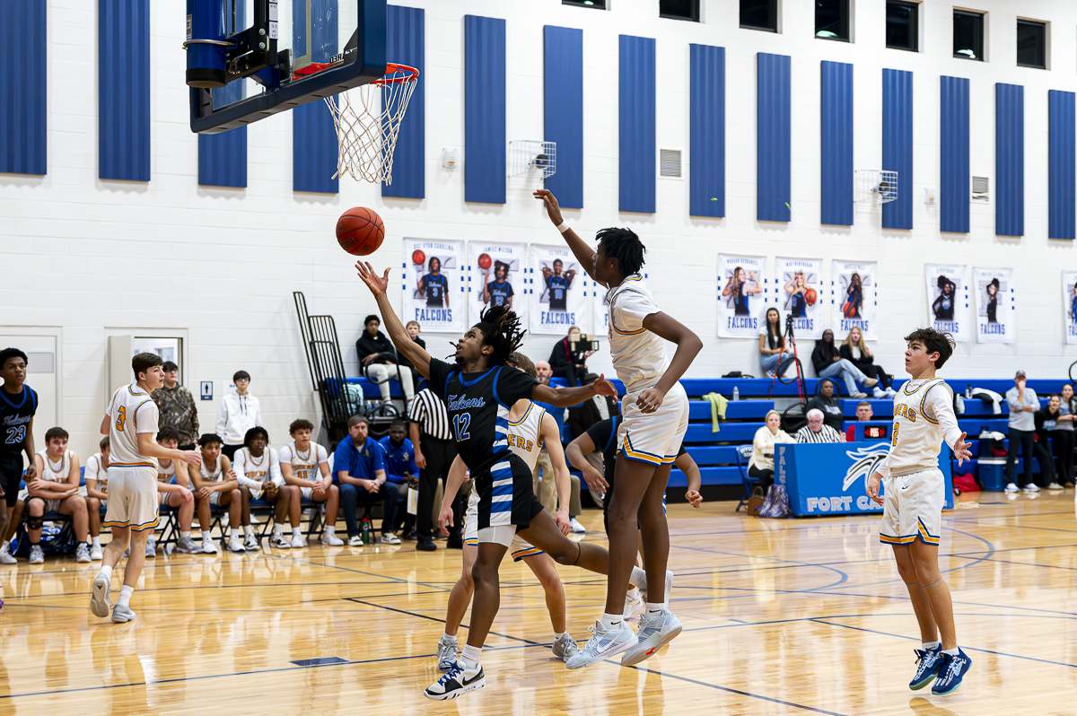 #22 Israel Dillard of the FCHS Falcons for three against the Caldwell County Tigers on January 8, 2025 (Jeff Danault)