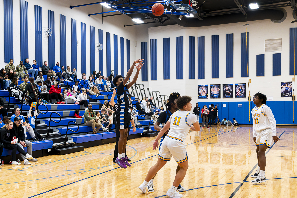 #23 Tyreek Anthony stands alone for the free throw against the Caldwell County Tigers on January 8, 2025 (Jeff Danault)