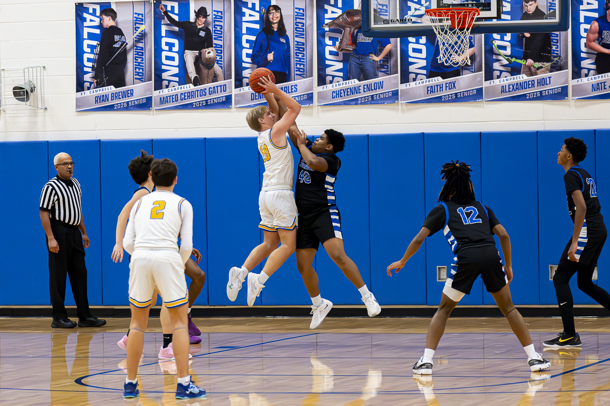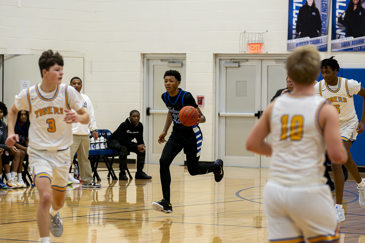 FORT CAMPBELL, KY (CHRISTIAN COUNTY NOW) – The Fort Campbell Falcons hosted the Caldwell County Tigers on Wednesday night at Fort Campbell High School. Despite a 14 point performance from Falcon guard Tyreek Anthony, the Tigers defensively dominated to earn a 75-24 victory.