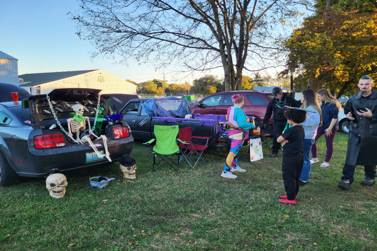HOPKINSVILLE, KY (CHRISTIAN COUNTY NOW) – People with the Kentucky Cruizers parked their classic cars and trucks at the Trail of Tears Commemorative Park in Hopkinsville to pass out treats to costumed kids for Halloween on Oct. 19.