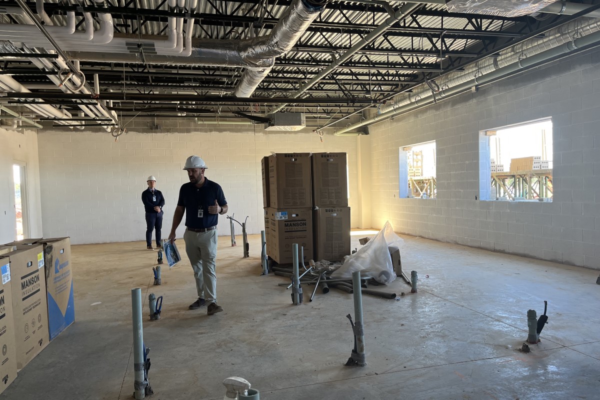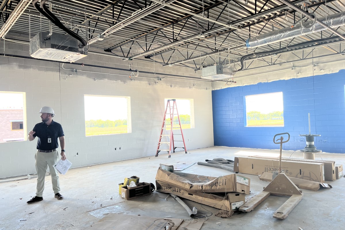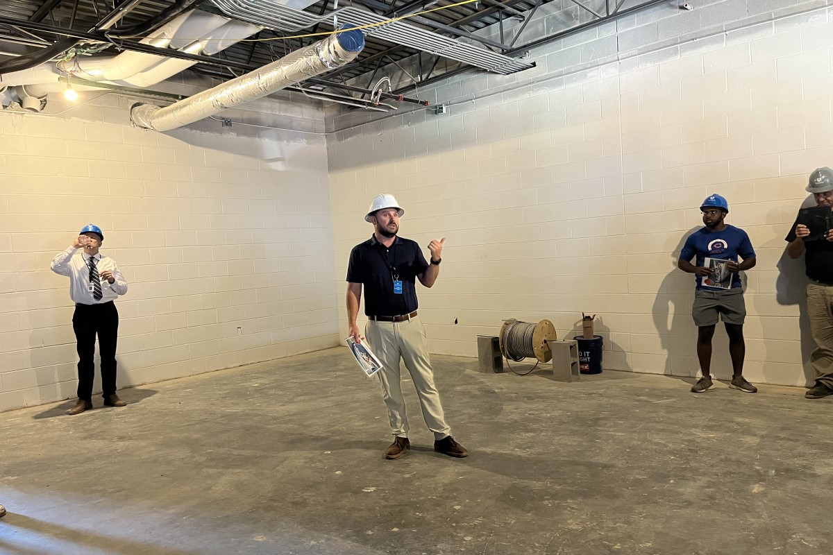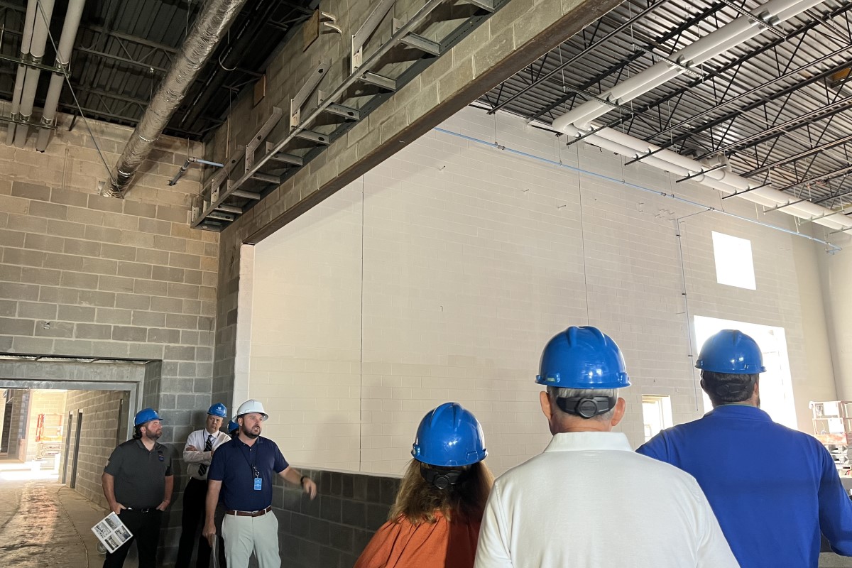 On Oct. 2, Dr. Jason Wilson Director of Technology at CCPS and point of contact for the construction project, along with Superintendent Chris Bentzel lead a tour through the site of the consolidated Christian County High School. Local media along with community members were taken through the corridors to show the progress and layout of the school.