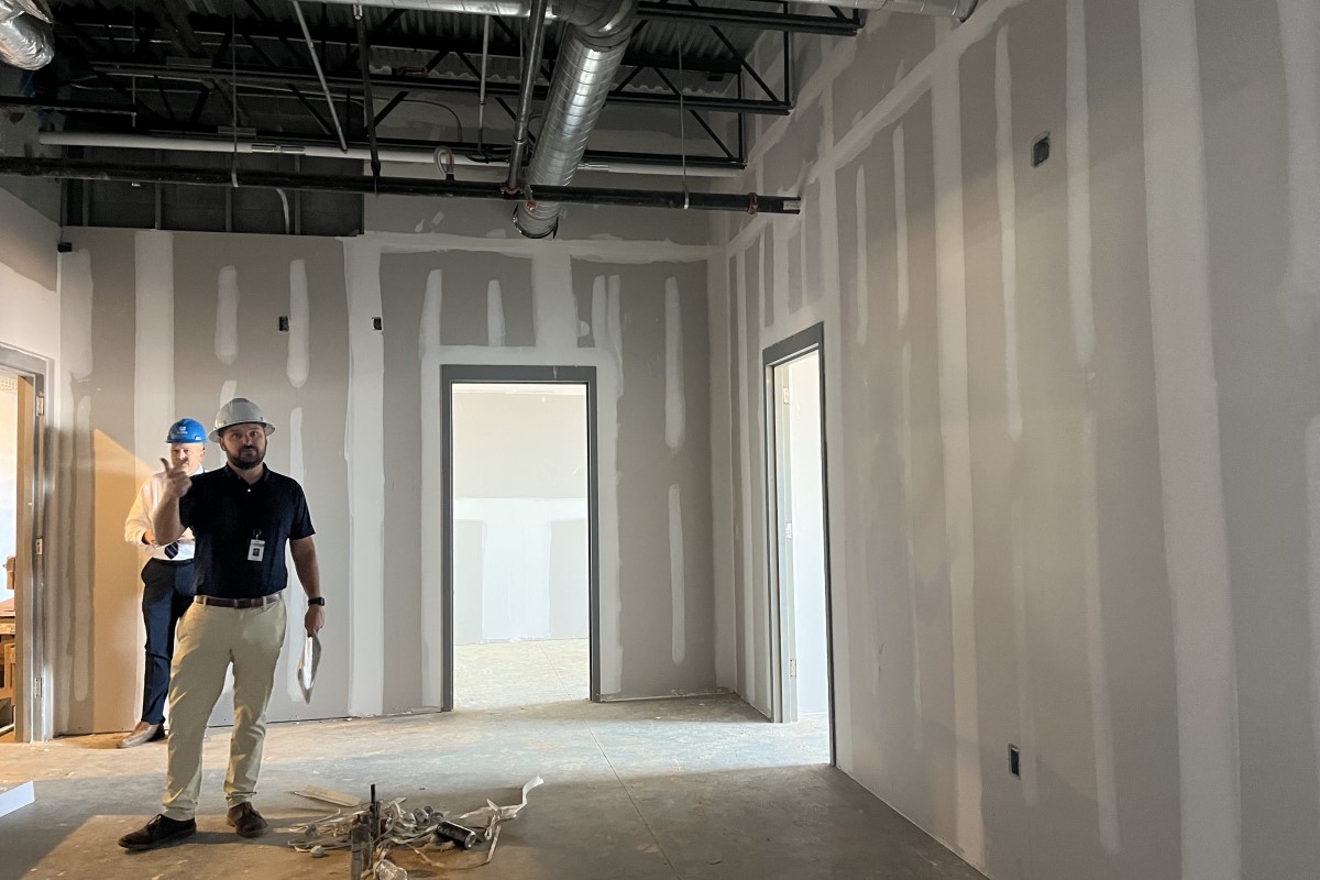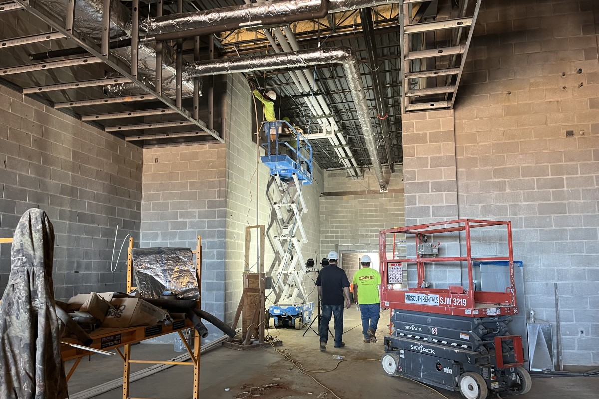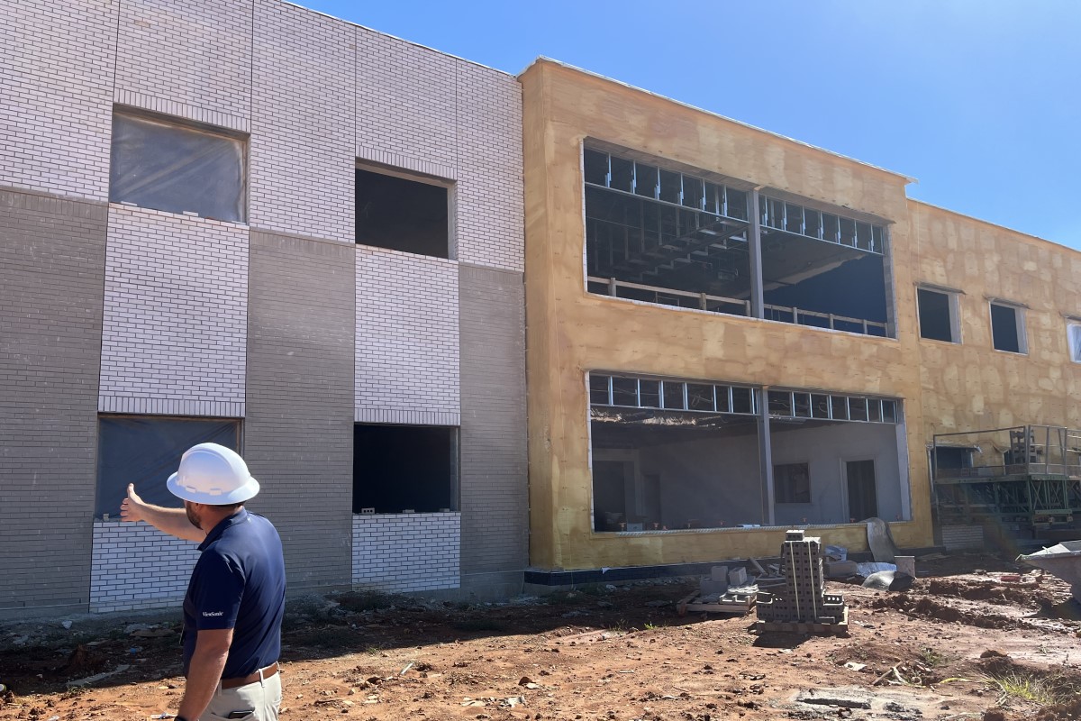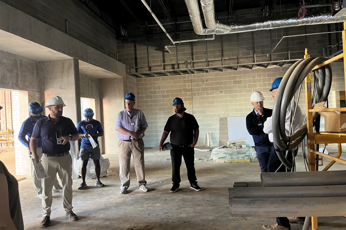 On Oct. 2, Dr. Jason Wilson Director of Technology at CCPS and point of contact for the construction project, along with Superintendent Chris Bentzel lead a tour through the site of the consolidated Christian County High School. Local media along with community members were taken through the corridors to show the progress and layout of the school.