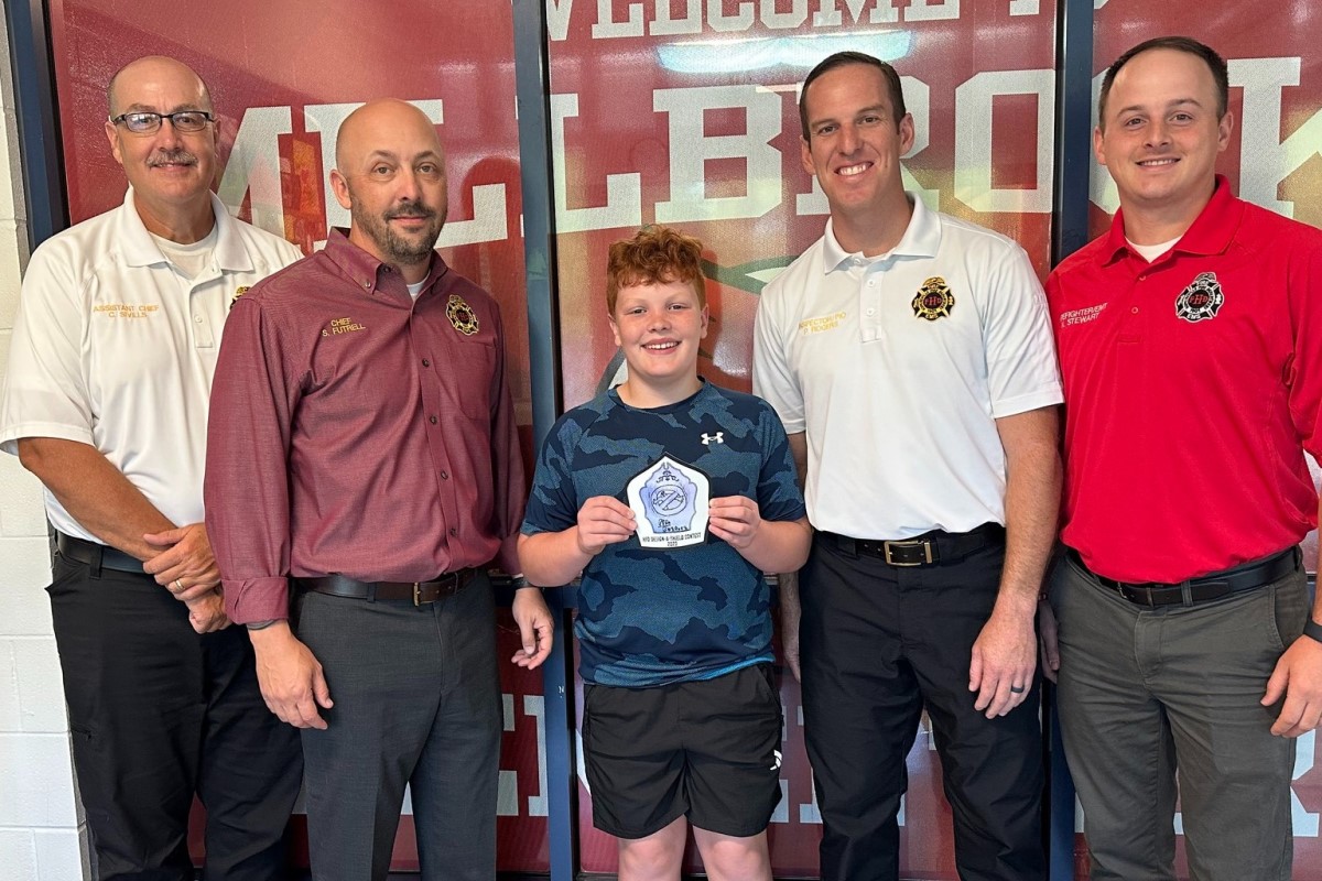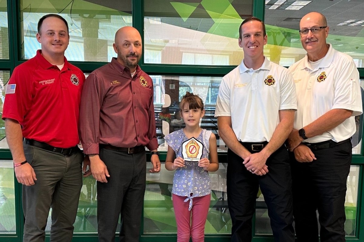 The contest began to help raise awareness about National Fire Prevention Month in October. Elementary school students across the county could submit their designs for a chance to win. Fire Chief Futrell and the fire prevention team visited all the students to present them with their custom shields.