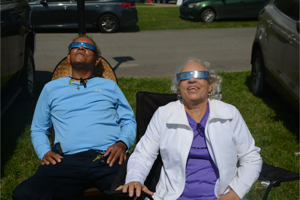 Solar eclipse watch part at Hopkinsville Visitors Center. Hopkinsville, Kentucky. April 8, 2024 (Daynnah Carmona)