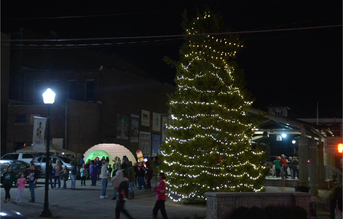 HOPKINSVILLE, KY (CHRISTIAN COUNTY NOW) – People gathered at Founders Square Friday night for a festive countdown leading to the lighting of a massive Christmas tree in the center of downtown. Hopkinsville Mayor Knight gave opening remarks, and the crowd was led in song to many Christmas favorites.