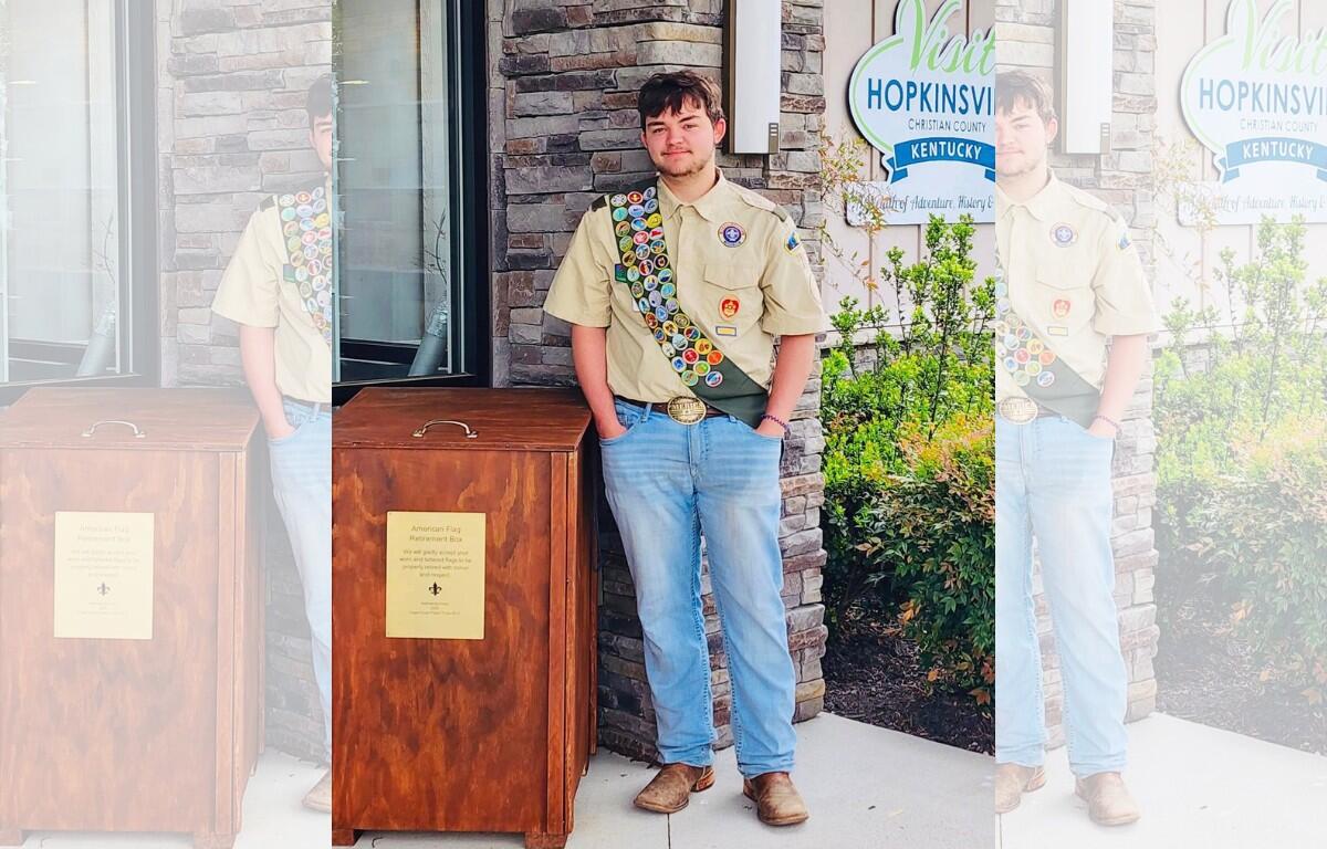 HOPKINSVILLE, KY (CHRISTIAN COUNTY NOW) – Mathew Burnham with Troop 3013 in Hopkinsville recently completed an Eagle Scout project that supplies the community with places to properly dispose of damaged or tattered flags by establishing American flag retirement boxes around the city.