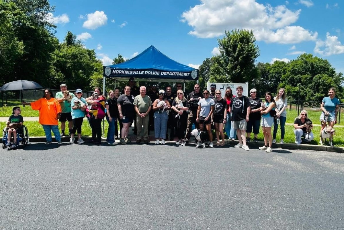 HOPKINSVILLE, KY (CHRISTIAN COUNTY NOW) – The Hopkinsville Police Department’s popular paw-trol dog Bolo was showered with gifts and belly scratches while celebrating his fifth birthday with the community during a party at the Pardue Lane Dog Park. Dogs, kids, and animal lovers joined in the celebration with the Christian County Animal Shelter, The Groomery, and Haven 12:10 Animal Sanctuary set up in support. To cool off, the Hopkinsville Fire Department set up a dog pool for partying pups.