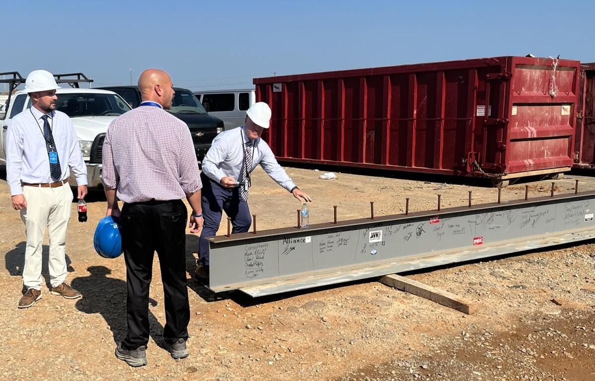 This first week that Christian County Public Schools welcomed back students, contractors with Alliance Co. installed the final beam inside of the new school. To commemorate the occasion, contractors along with Superintendent Chris Bentzel, Executive Principal Ken Carver, and district leaders added their signatures to the beam.