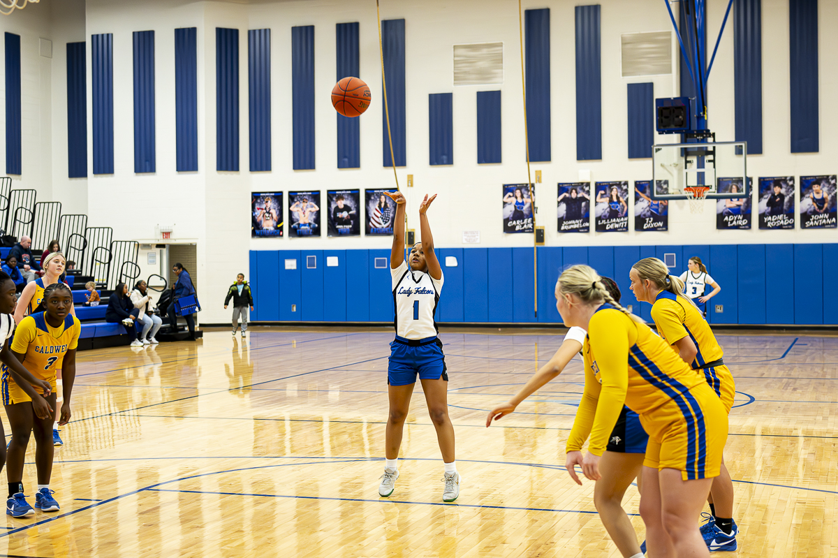 #1 A’mari Grimsley of the FCHS Lady Falcons with the free throw against the Caldwell County Tigers on January 8, 2025. (Jeff Danault)