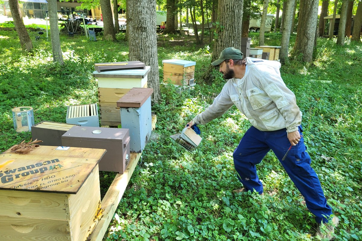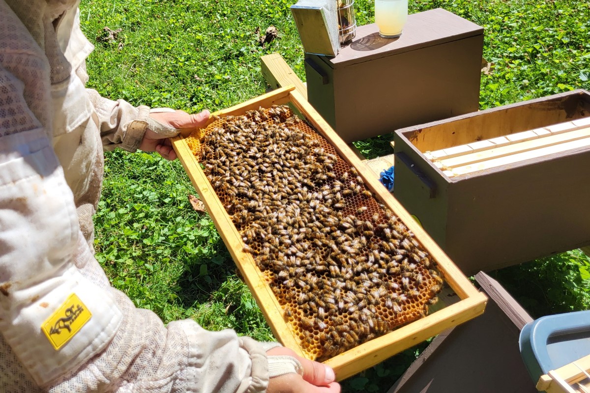 Removing hive beetles and checking on comb development are just a few of the day-to-day tasks necessary to owning bees. To keep them calm, natural smoke is pumped into the hives as the burning smell triggers an innate response to a forest fire, “They start to gorge themselves on honey because they think they are going to have to leave,” said Hogan. “It’s like you eat a bunch of sugary stuff and have a sugar crash.”