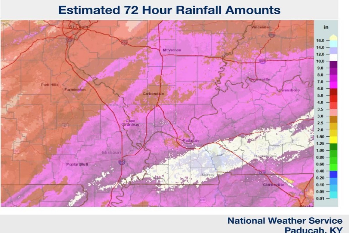 Information from the National Weather Service in Paducah shows that over the past 72 hours, areas of Hopkinsville and Christian County received nearly a foot of rain. The Flood Watch previously in place has been canceled for Sunday, while a Freeze Watch has already been issued for Tuesday due to an anticipated extreme drop in overnight temperatures.