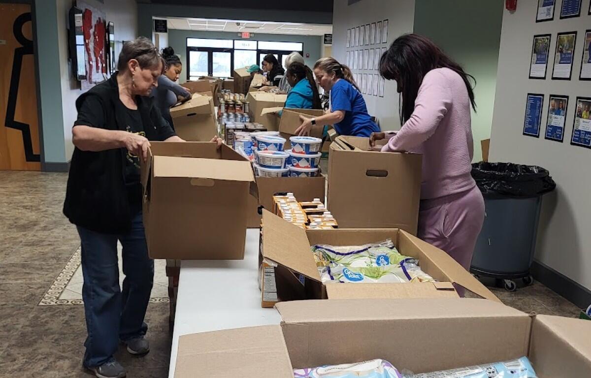 On Nov. 24, volunteers gathered at Edgewood to pack the meal boxes for registered participants which contained a variety of ingredients to make a full Thanksgiving feast. This was through a partnership with Challenge House, Edgewood, Men 2 Be, and other surrounding churches. Boxes included a full-sized frozen turkey, gravy packets, dressing, potatoes, green beans, cream of mushroom soup, corn, yams, a pumpkin pie kit, marshmallows, and cool whip.