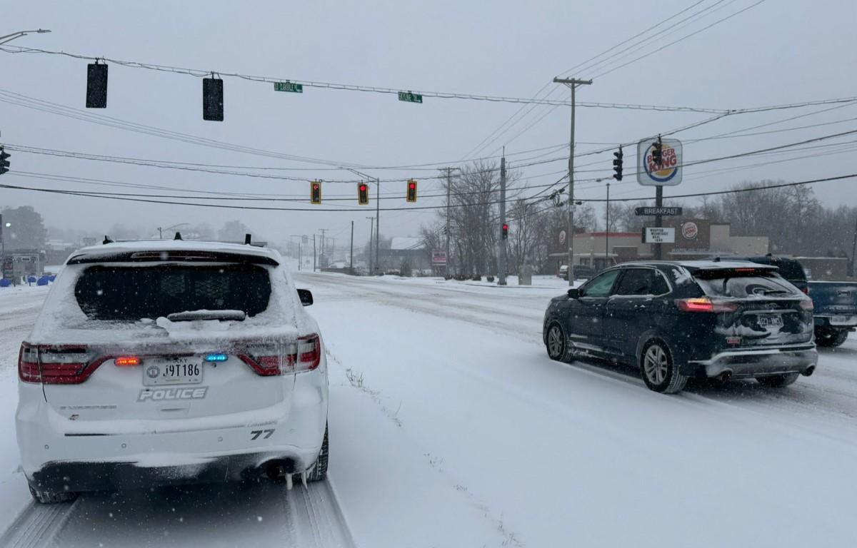 HOPKINSVILLE, KY (CHRISTIAN COUNTY NOW) – The Hopkinsville Police Department shared several photos of snow-covered roads throughout the city on Saturday, with conditions expected to continue through the weekend. They are encouraging residents to stay home if possible.