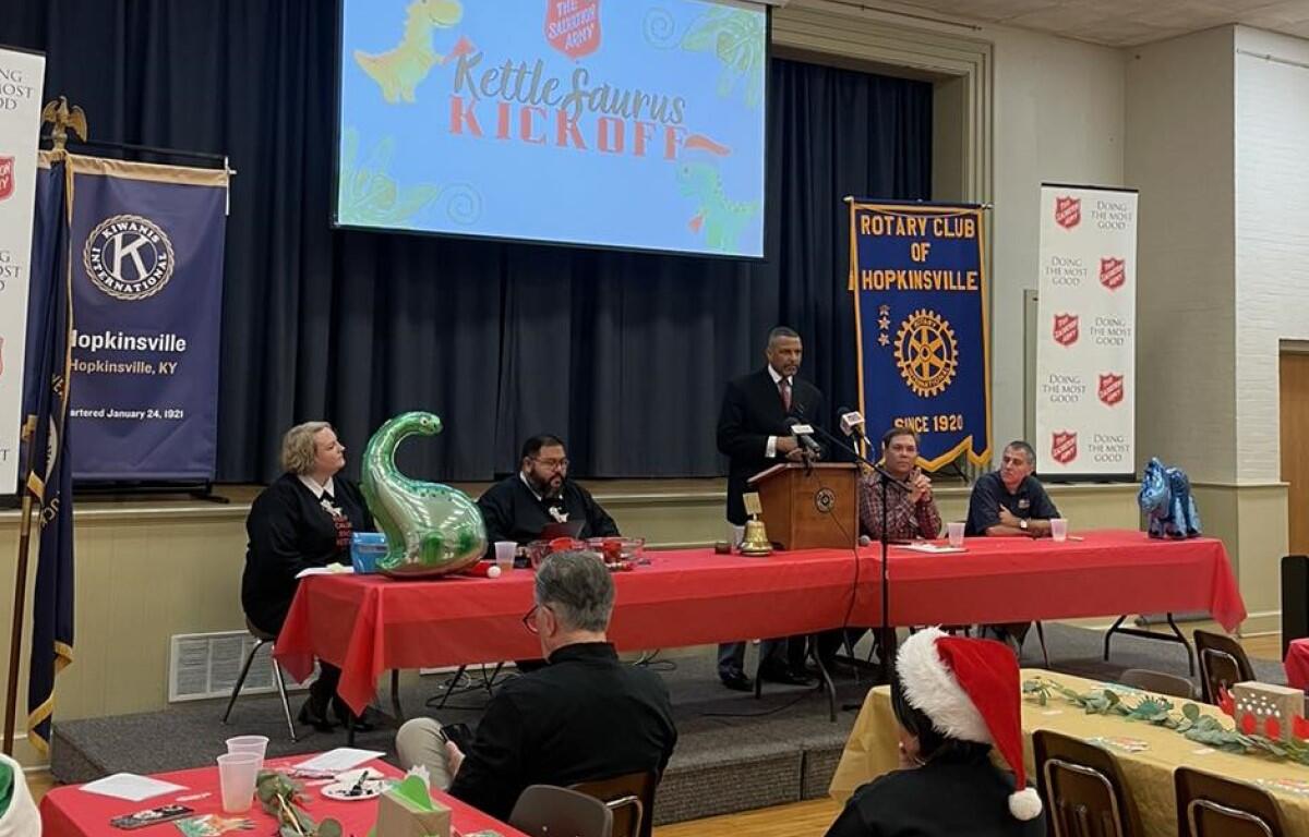 HOPKINSVILLE, KY (CHRISTIAN COUNTY NOW) – The Salvation Army of Hopkinsville joined the Kiwanis and Rotary Club meeting this week to kick off the kettle bell campaign for this holiday season. This annual kick off is celebrated every year the Tuesday before Thanksgiving.