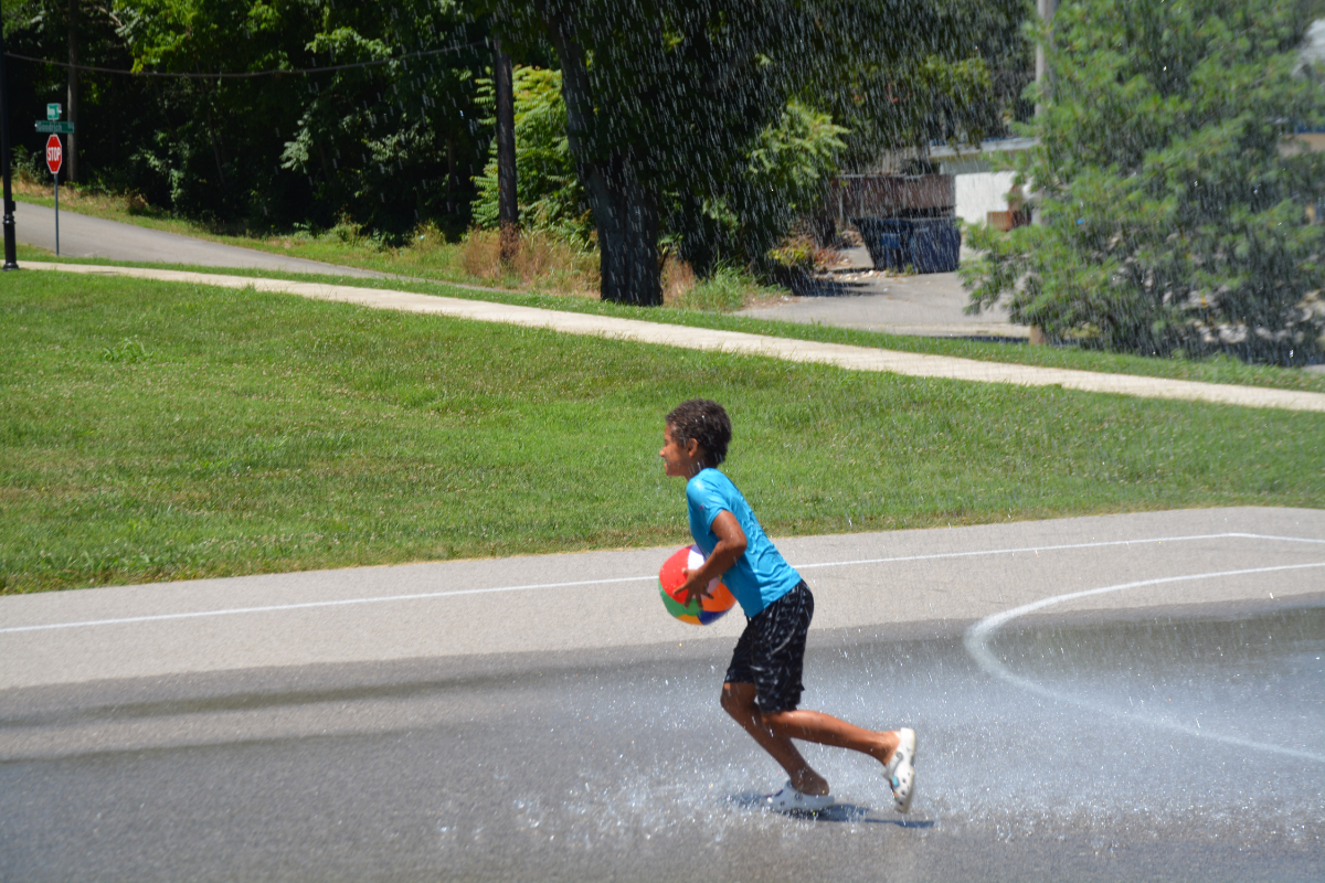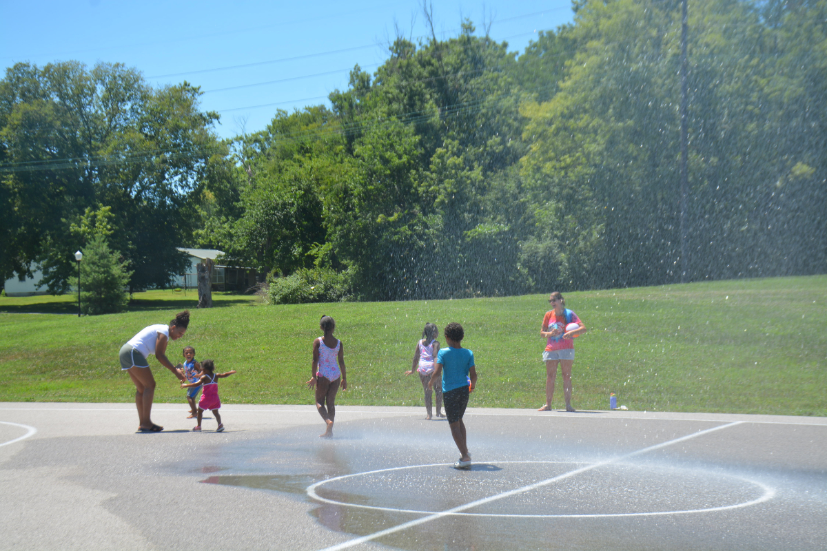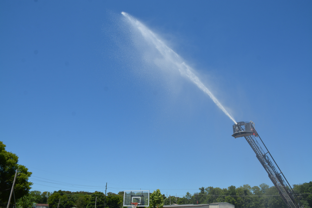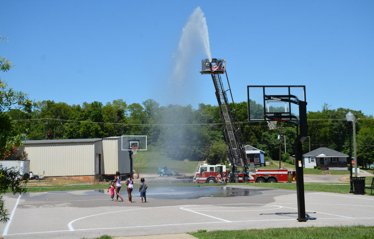 HOPKINSVILLE, KY (CHRISTIAN COUNTY NOW) – Kids were able to beat the heat with Hopkinsville Parks and Recreation on Tuesday. As temperatures peaked at 92 degrees, the Hopkinsville Fire Department extended their ladder on a firetruck to spray a hose on the basketball court at Joe Mumford Park.