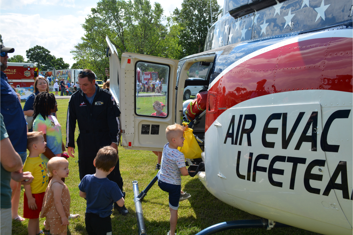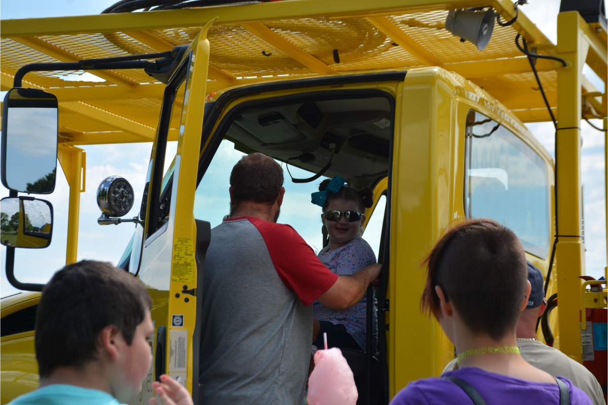Non-stop honks were heard as kids sat in the front seat of their favorite trucks including Hopkinsville police cars, a fire truck, ambulance, construction vehicles, garbage trucks, agriculture equipment, care cars, rescue vehicles, dump trucks, utilities vehicles, long-haul trucks, tow trucks, and military vehicles.  Free hot dogs and snow cones were available, and a life flight helicopter landed in front of excited young faces.