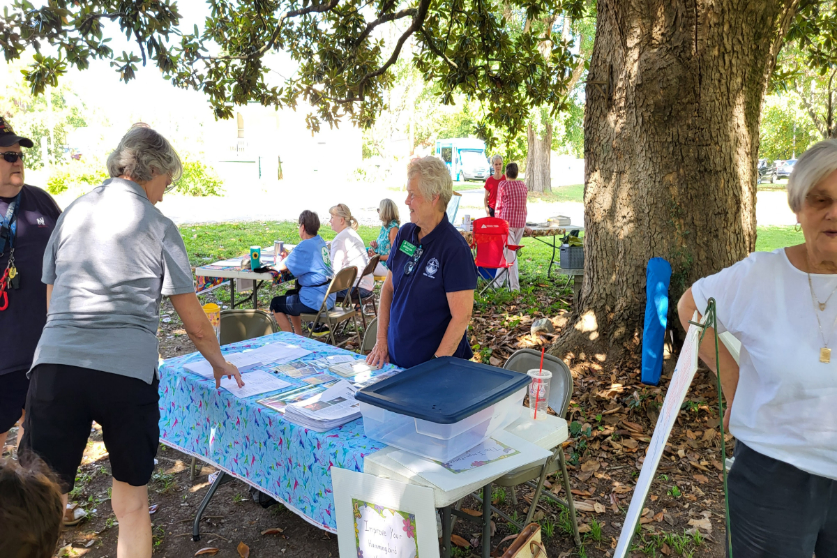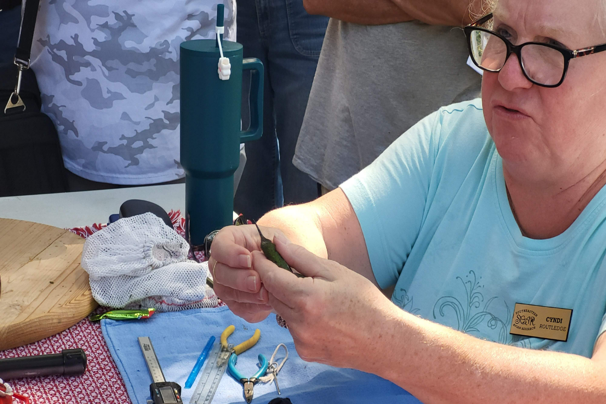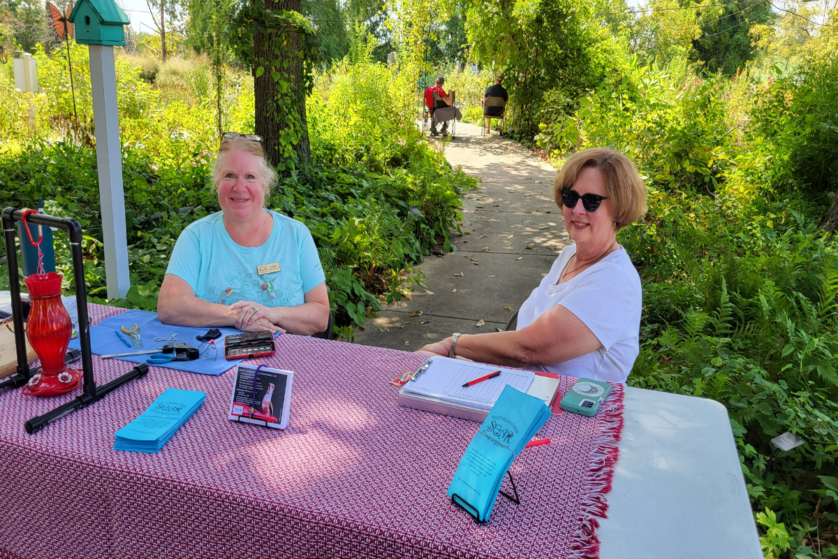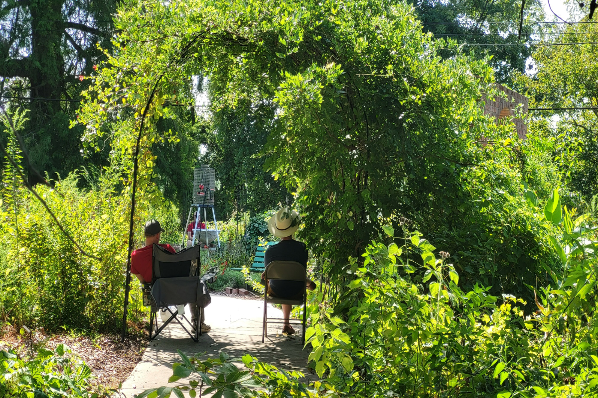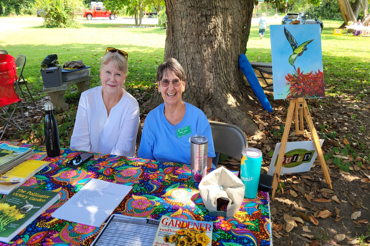 Near the butterfly garden, a colorful and unique feature at Jeffers Bend, volunteers were stationed as lookouts to watch the skies for incoming hummingbirds. Feeders were placed inside cages that would trigger shut to attempt to catch the fast birds. They were then gently placed inside mesh bags and sent to be banded where people could watch