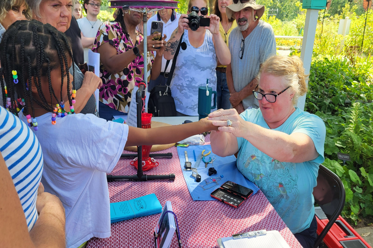 When a bird was caught, people would quickly gather to watch the meticulous process of placing small bands, that are only millimeters wide, on the hummingbird’s legs. According to Christian County Master Gardener Susan Childs, it helps track migration patterns since the bands provide information about where they were previously caught. She added that the hummingbirds may travel as far as South America and return to Christian County next year.