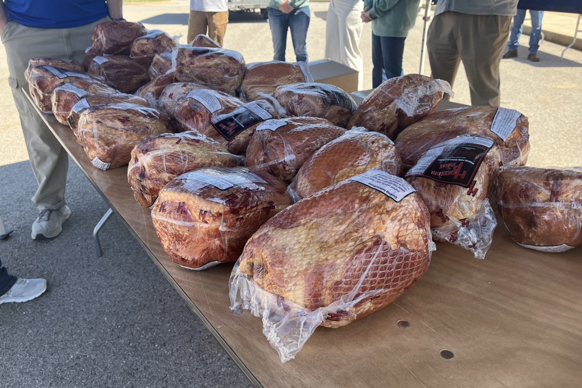 The Christian County Chamber of Commerce Military Affairs Committee hosted Hams for Heroes Thursday at Oak Grove Racing, Gaming & Hotel. Over 500 hams were handed out to active-duty military.