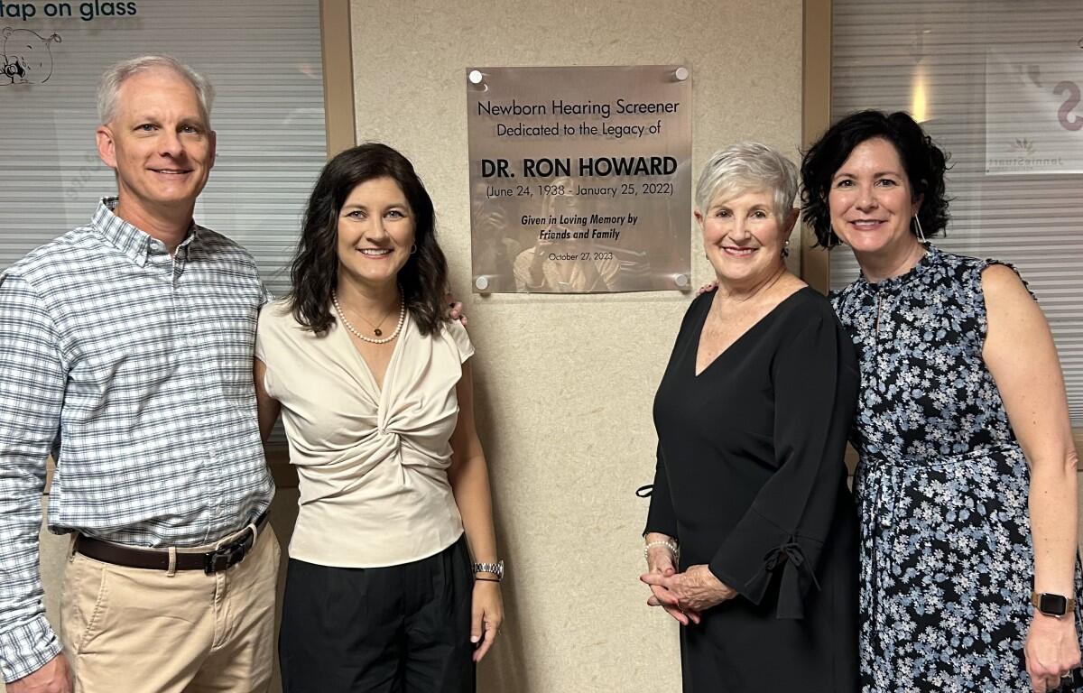 HOPKINSVILLE, KY (CHRISTIAN COUNTY NOW) – Donations made to the Jennie Stuart Health Foundation in honor of the late Dr. Ron Howard helped purchase a Newborn Hearing Screener. A dedication ceremony was held where a plaque was hung in his honor in the viewing area of the NICU and Well Baby Nursery.