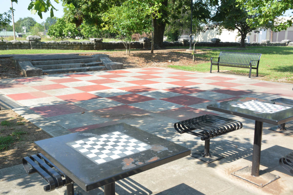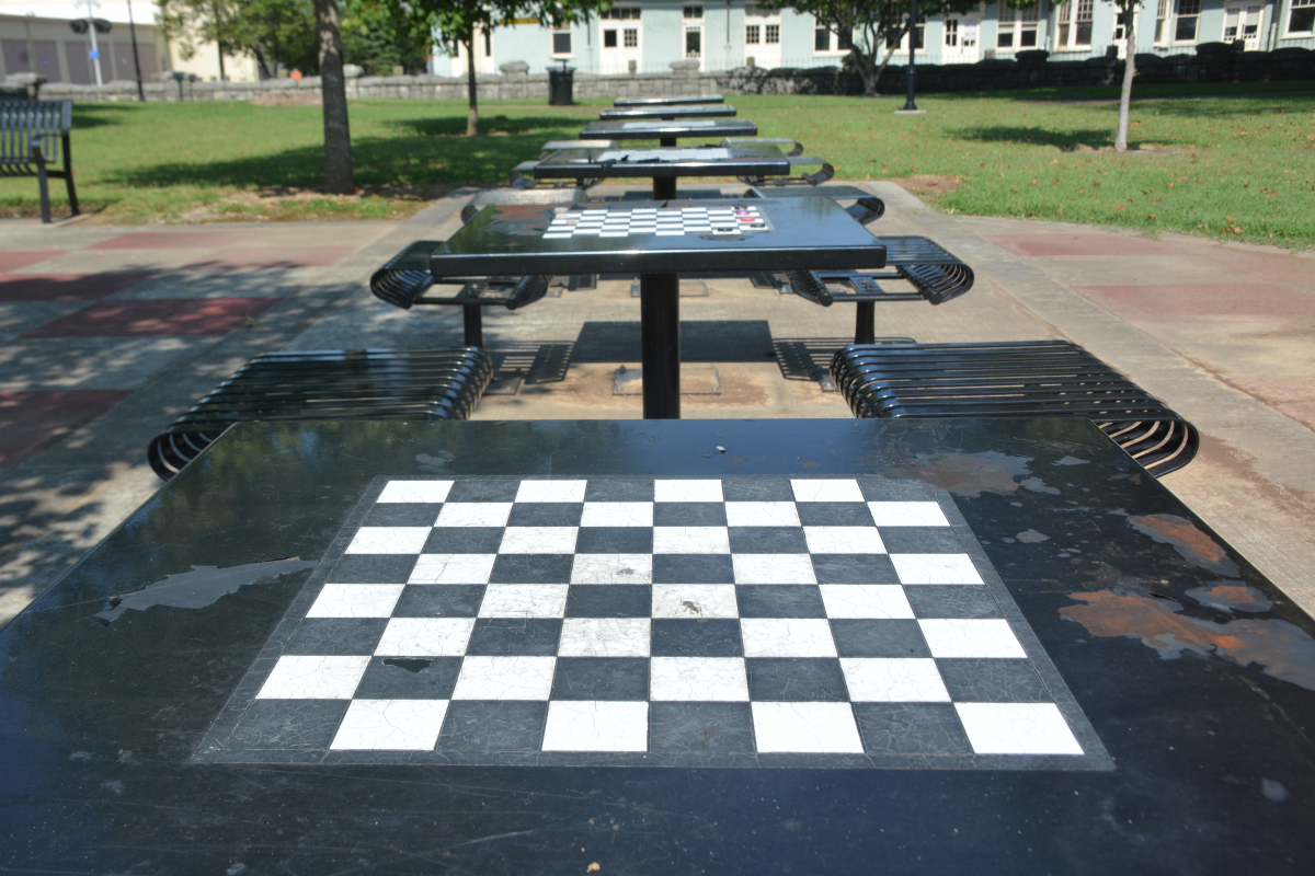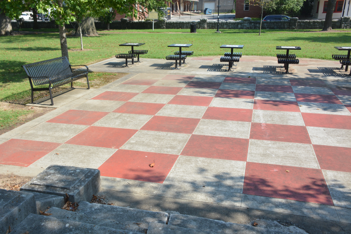 In 2014, the park saw a major renovation, and the life-sized chess board and multiple chess tables were added. Today, this is a peaceful little spot in busy downtown to come and enjoy the trees, play some chess, and watch the train go by.