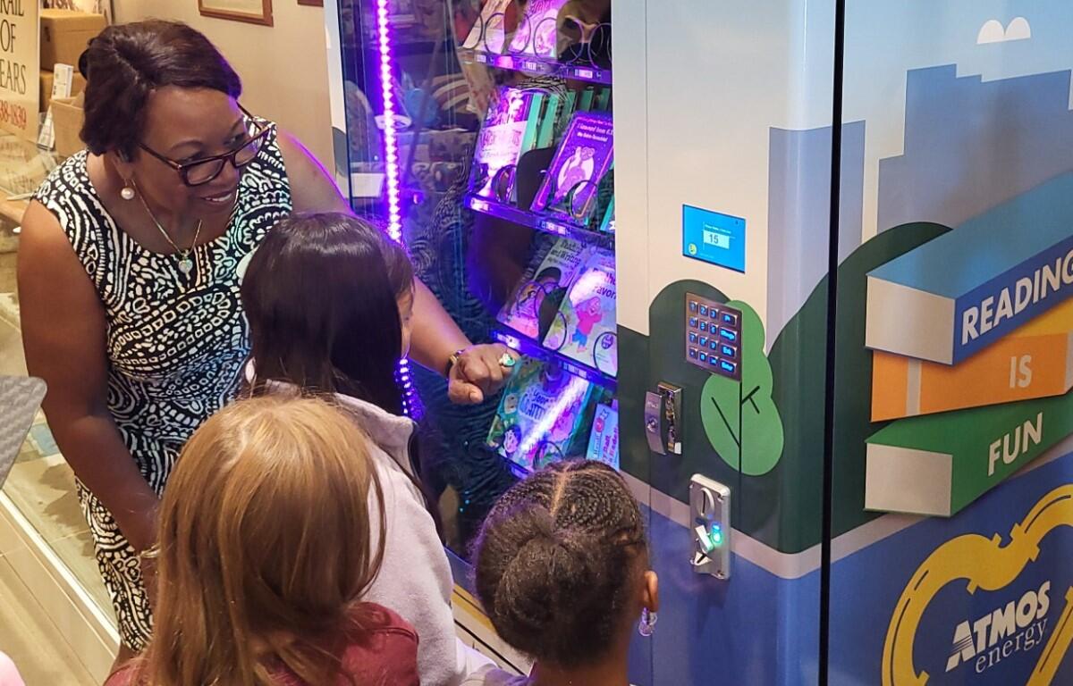This vending machine was made possible due to a donation from Atmos Energy, who was present at the official ribbon cutting on Sept. 12. The vending machine’s official name is Literacy Launcher, which was decided through a naming contest held among local teachers. Maria Dietzel at Pembroke Elementary had the winning name, and received a $500 check for her class from Atmos.