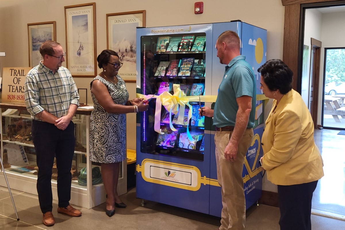 HOPKINSVILLE, KY (CHRISTIAN COUNTY NOW) – The Hopkinsville Visitor’s Center is now the home of a unique vending machine that does not dispense snacks or drinks. Local students will instead have the option of using reward tokens from their school to receive a book in the Christian County Literacy Council’s new book vending machine.
