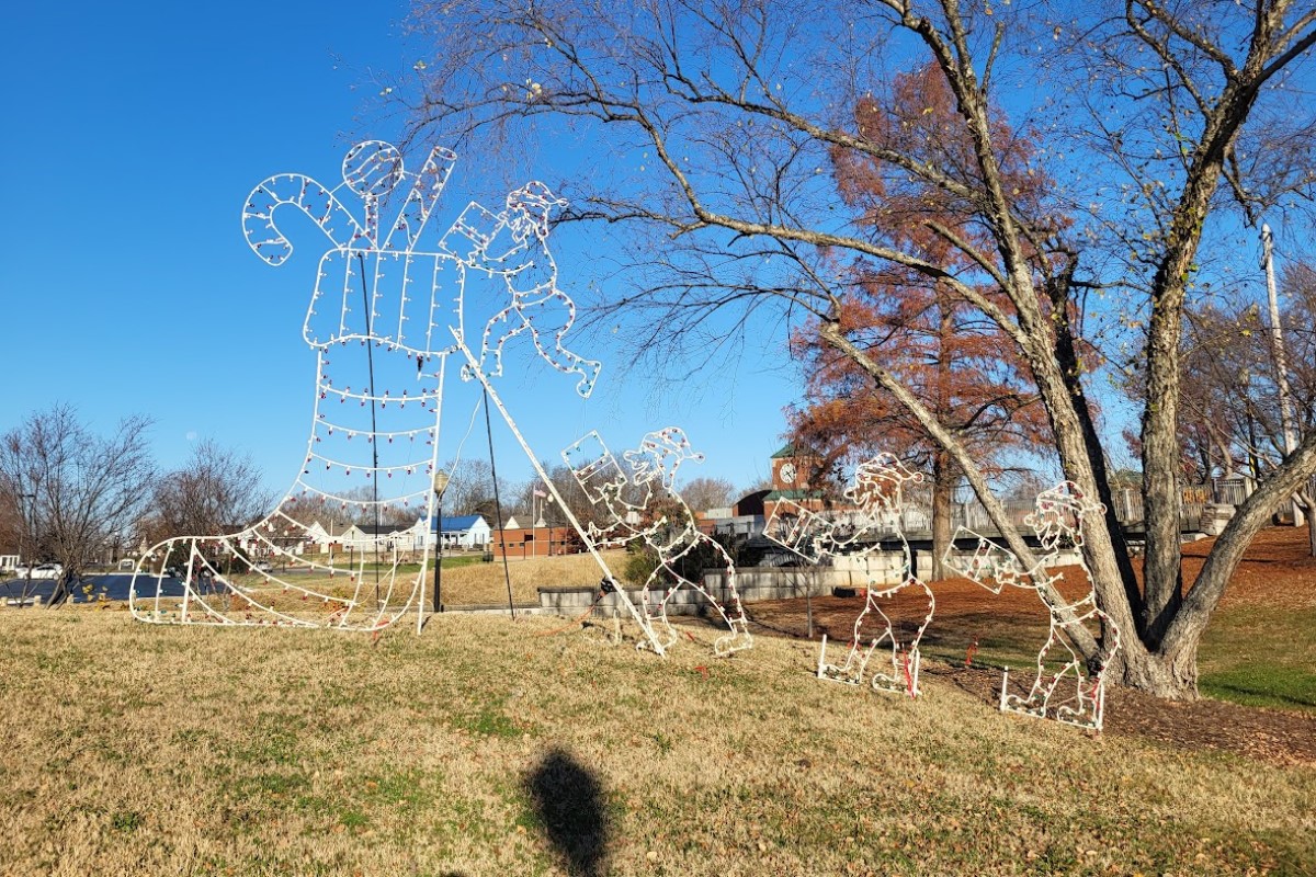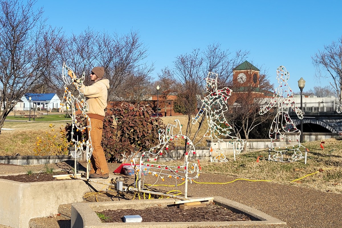 HOPKINSVILLE, KY (CHRISTIAN COUNTY NOW) – A festive light display is getting the finishing touches at Little River Park downtown. Workers from Hopkinsville’s Public Works department were on sight replacing the last few bulbs necessary to make the displays look their best.