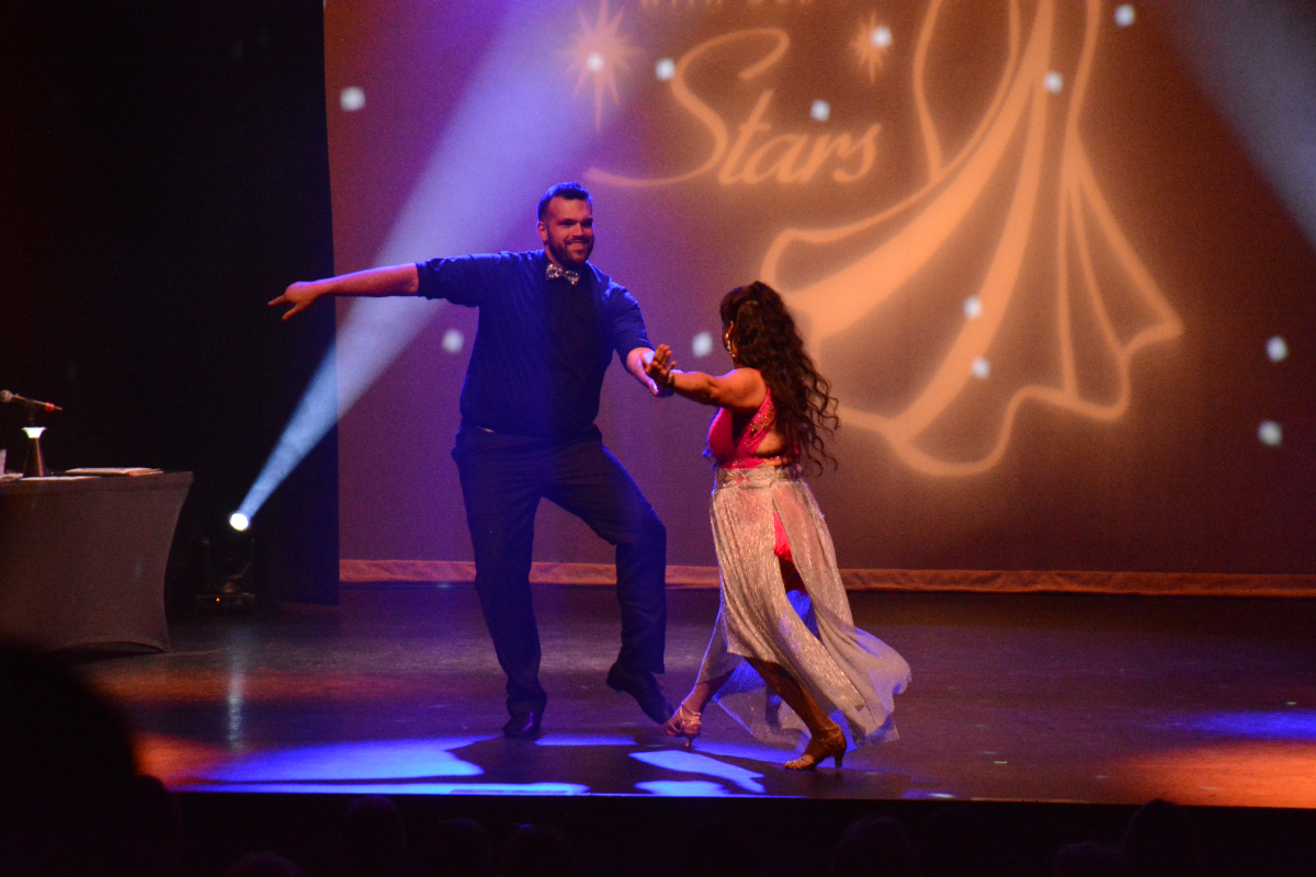 The theater was packed with supporters dressed their best to watch well-known local couples try their hand at different dance styles. Politicians, business owners, church officials, teachers, and many others have been working hard for weeks with local instructors to perfect their moves and compete for a trophy while raising funds.