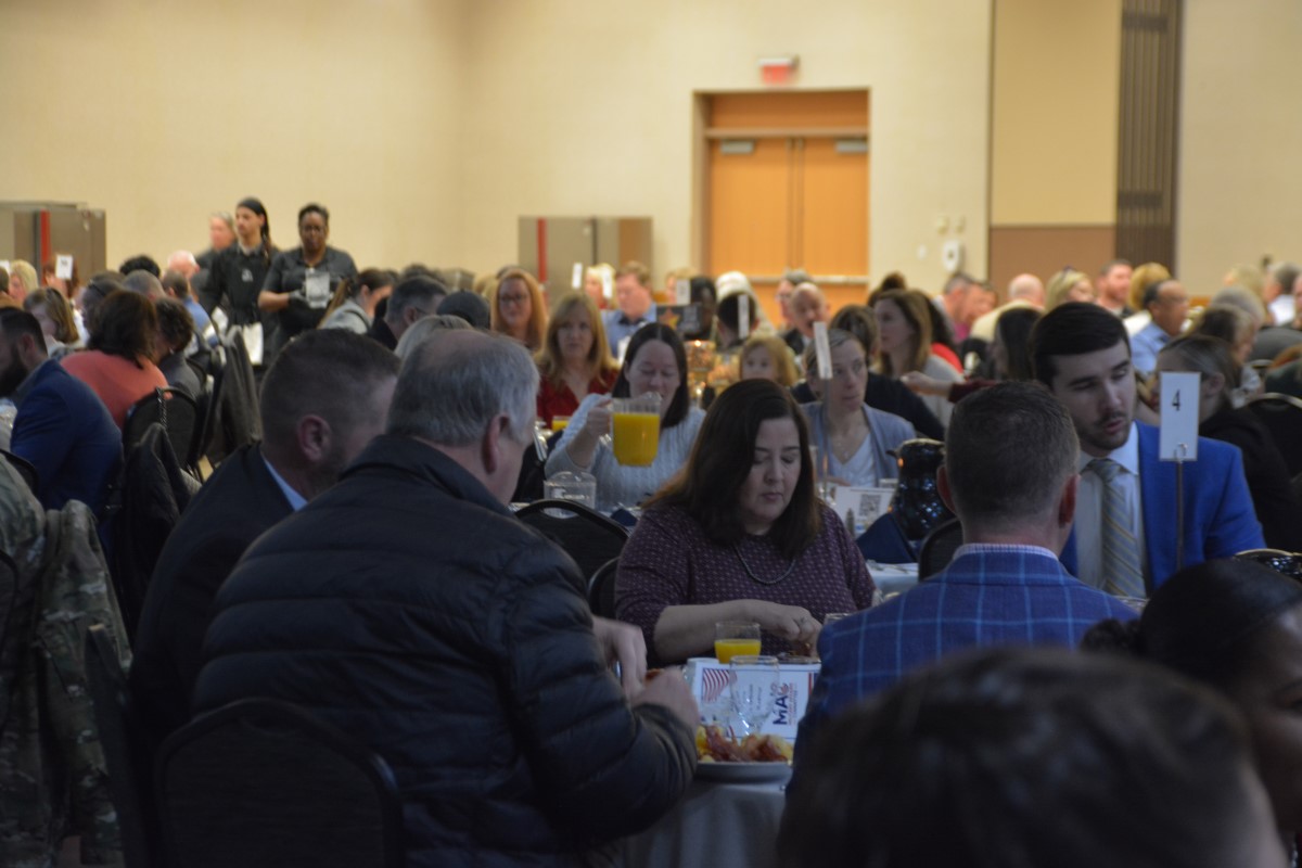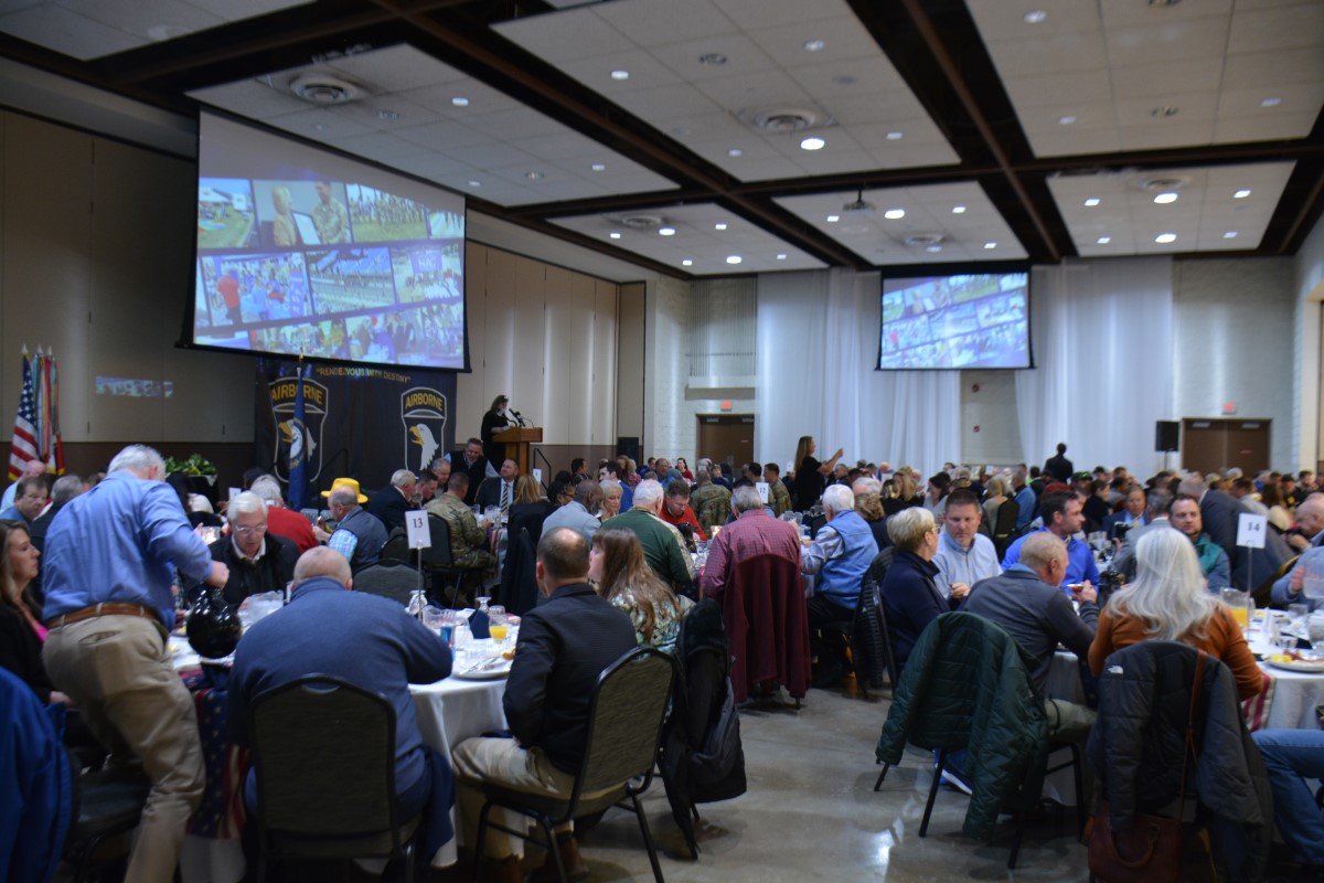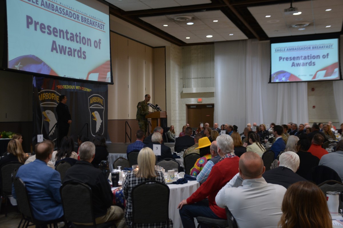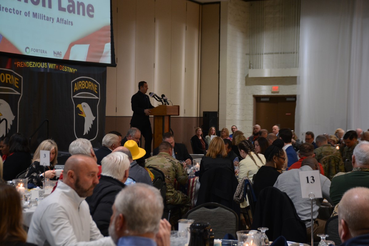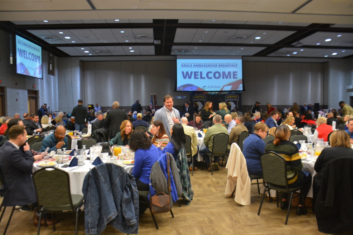 HOPKINSVILLE, KY (CHRISTIAN COUNTY NOW) – The Christian County Military Affairs Committee held their annual Eagle Ambassador Breakfast Thursday morning. Shannon Lane, the Director of Military Affairs said this was the largest crowd they’ve ever had for this event. Around 300 people enjoyed breakfast at The Bruce to watch the keynote speaker and celebrate the MAC’s accomplishments.