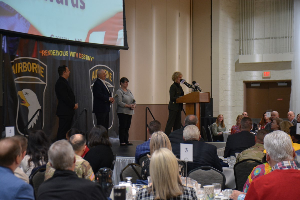 The keynote speaker was 101st Airborne Division (Air Assault) Colonel Kenneth Cole, Deputy Commander of Support. In addition, three awards were given out to members of the community. Holly Hampton won Outstanding MAC Member Award, Gene Curtis with Patriot Chevrolet won the Soaring Eagle Award, and White’s Auto Mall won the MAC Service Award.