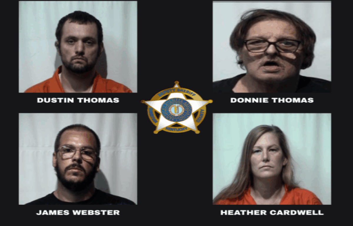 According to a news release from CCSO, the warrant was executed around 9 a.m. on Aug. 28 as a result of an investigation. Four suspects were located inside the residence, including 33-year-old Dustin Thomas of Crofton, 32-year-old James Webster of Pembroke, 39-year-old Heather Cardwell of Louisville, and 63-year-old Donnie Thomas of Crofton.