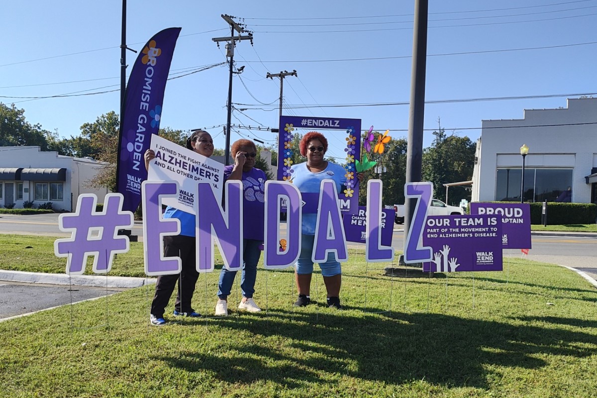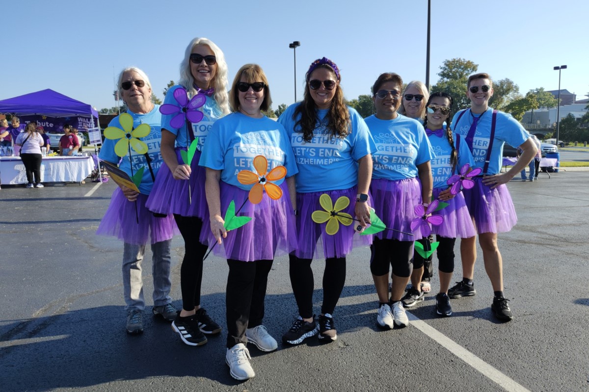 Participants ranged from those who have family members affected by Alzheimer’s or other types of dementia, to those who were there in support of the cause. Committee member and top promoter, Alan Toliver, was handing out large flowers for walkers to carry. Each color represented the walker’s association with sufferers of the disease. Purple for those who have lost loved ones, yellow for those who are or were caregivers for loved ones, blue for those living with Alzheimer’s or dementia and orange for those who have not been personally affected.
