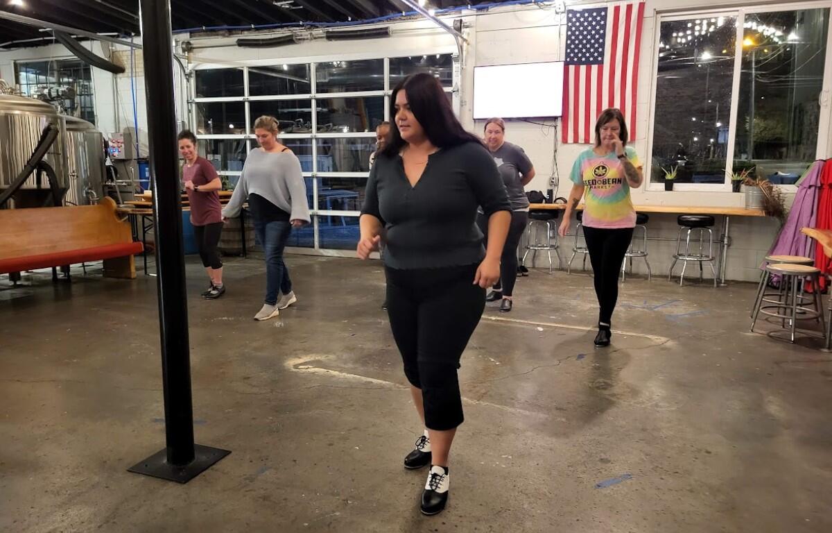 As the friendly chatter and catch ups among friends quieted as class kicked off, Duke began with basic warmups. The environment is fun yet focused with the frequent sounds of laughter and taps clicking across the back room of Hopkinsville Brewing Company. She explained that learning basics like shifting weight and movement will lay a good foundation for whatever they are looking to get out of the class.