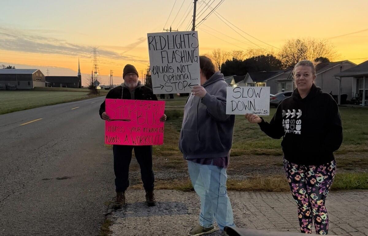 HOPKINSVILLE, KY (CHRISTIAN COUNTY NOW) – Residents in Oak Grove are pleading with motorists to drive safely around busses during pick up and drop off times, specifically on State Line Road. Rising concern led to a few residents getting the attention of nearby drivers with signs.