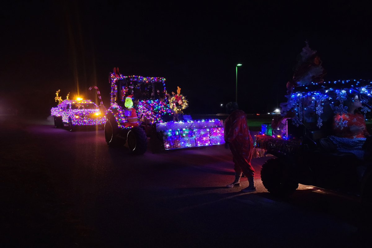 Decorated golf carts, vehicles, tractors, first responders and baton twirlers lit up the path, with the big man himself bringing up the rear. After the parade, Oak Grove Mayor Jackie Oliver stood by Santa’s side to flip the switch and turn on the Christmas lights at the walking trail.