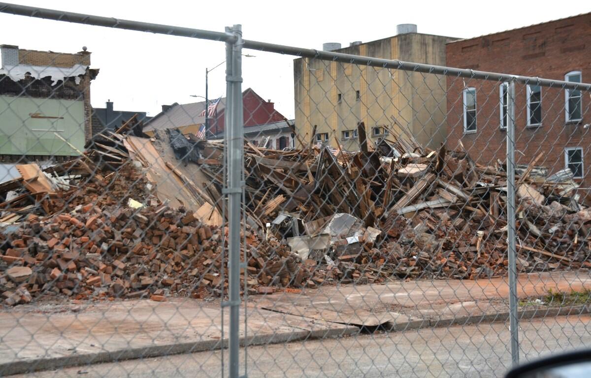 HOPKINSVILLE, KY (CHRISTIAN COUNTY NOW) – The Phoenix building in downtown Hopkinsville has been demolished, and traffic on Main Street is down a lane while construction crews clear the rubble. The fate of the now-empty lot is still up in the air, but officials have hinted at what may come next.