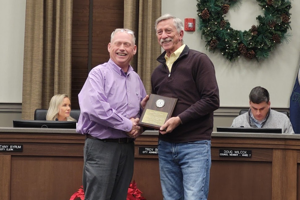 Councilmembers Natasha Francis, Bruce Smiley, Doug Wilcox, Steve Keel, Robert Meek, Jamie L. Lienberger, and Matthew Handy will be leaving office following this fall’s election results. Mayor Knight awarded each of them with a plaque to signify their time on the city council. “I’d like to say thank you to my council, we’ve had a very interesting two years together,” said Knight. “I appreciate your help, your guidance in how we move the city forward.”